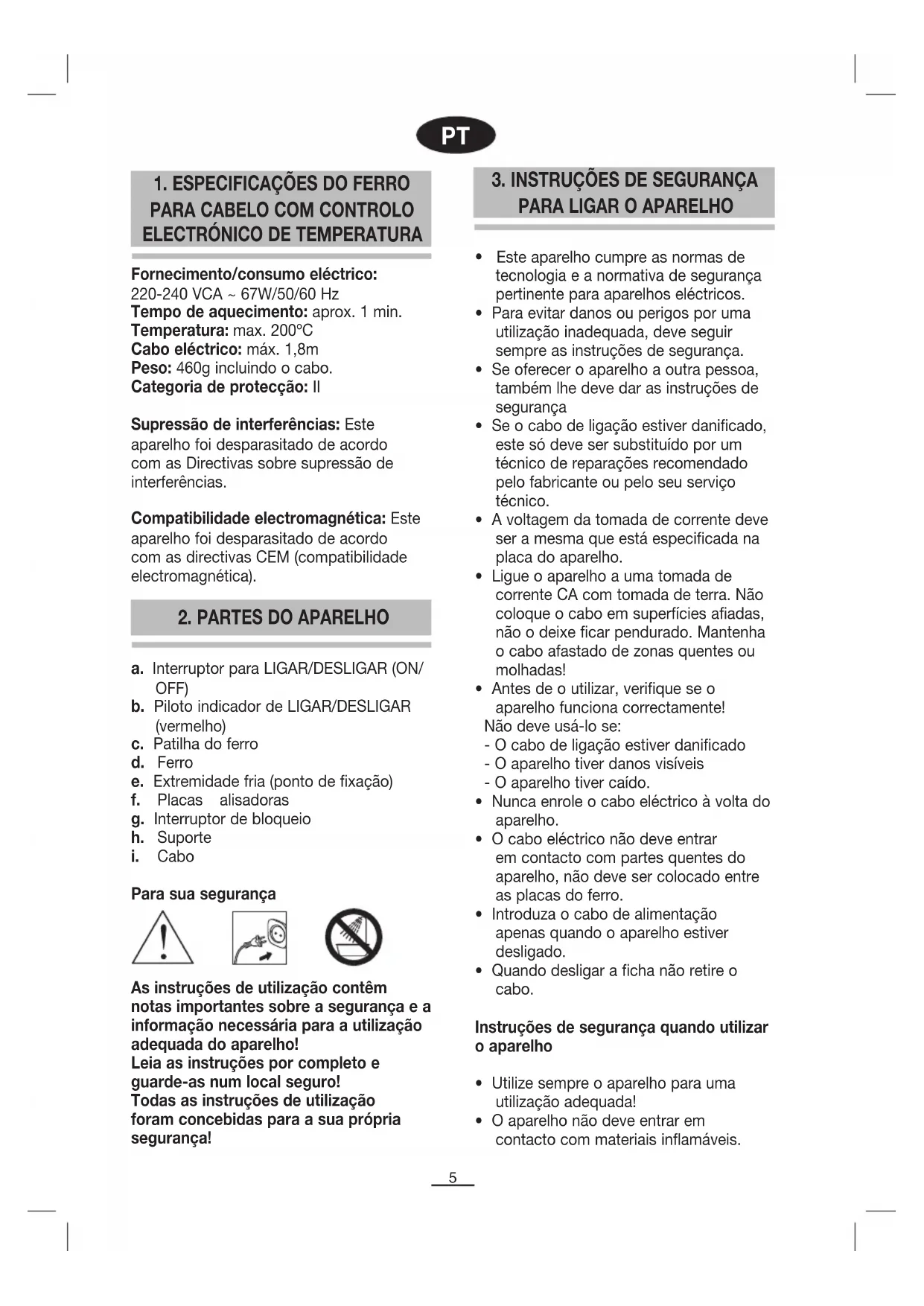 3. INSTRUÇÕES DE SEGURANÇA PARA LIGAR O APARELHO