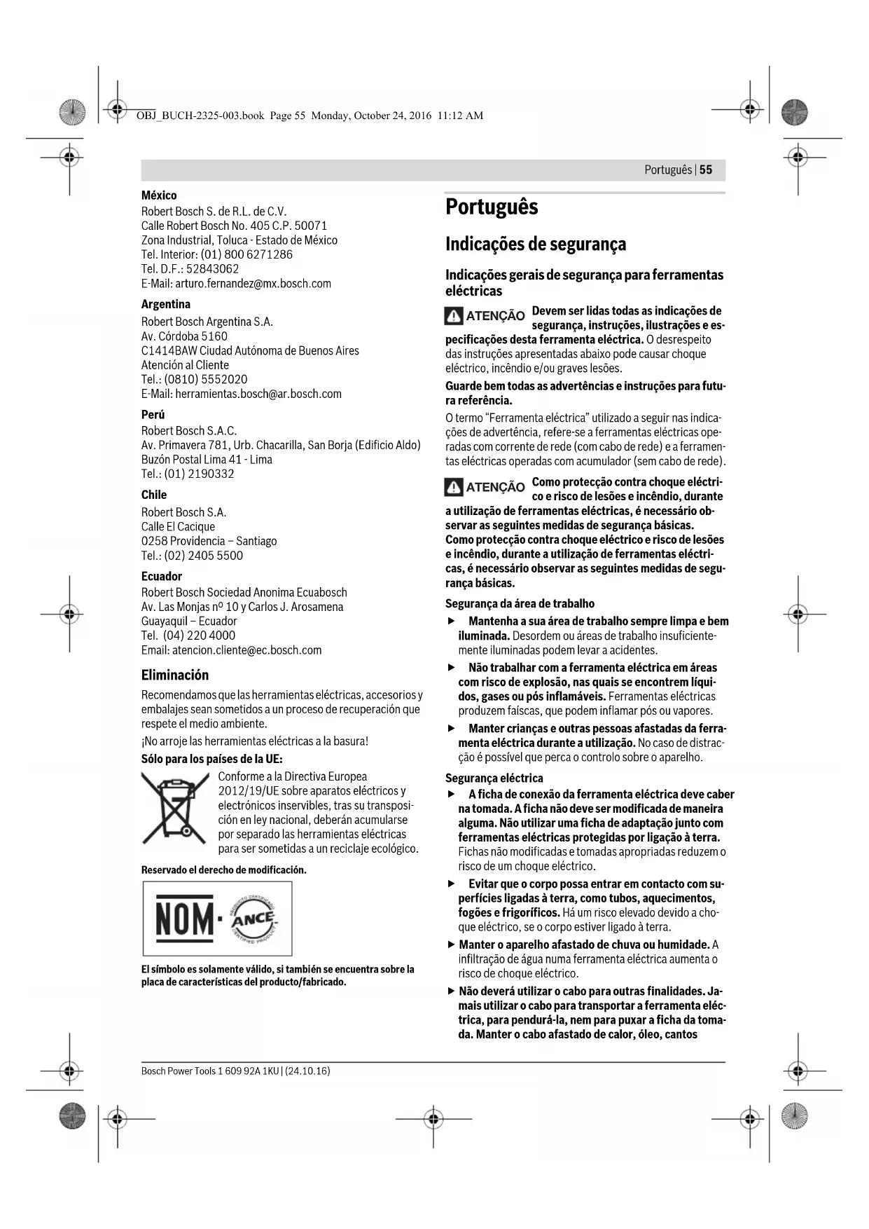 Ferramentas eléctricas, acessórios e embalagens devem ser