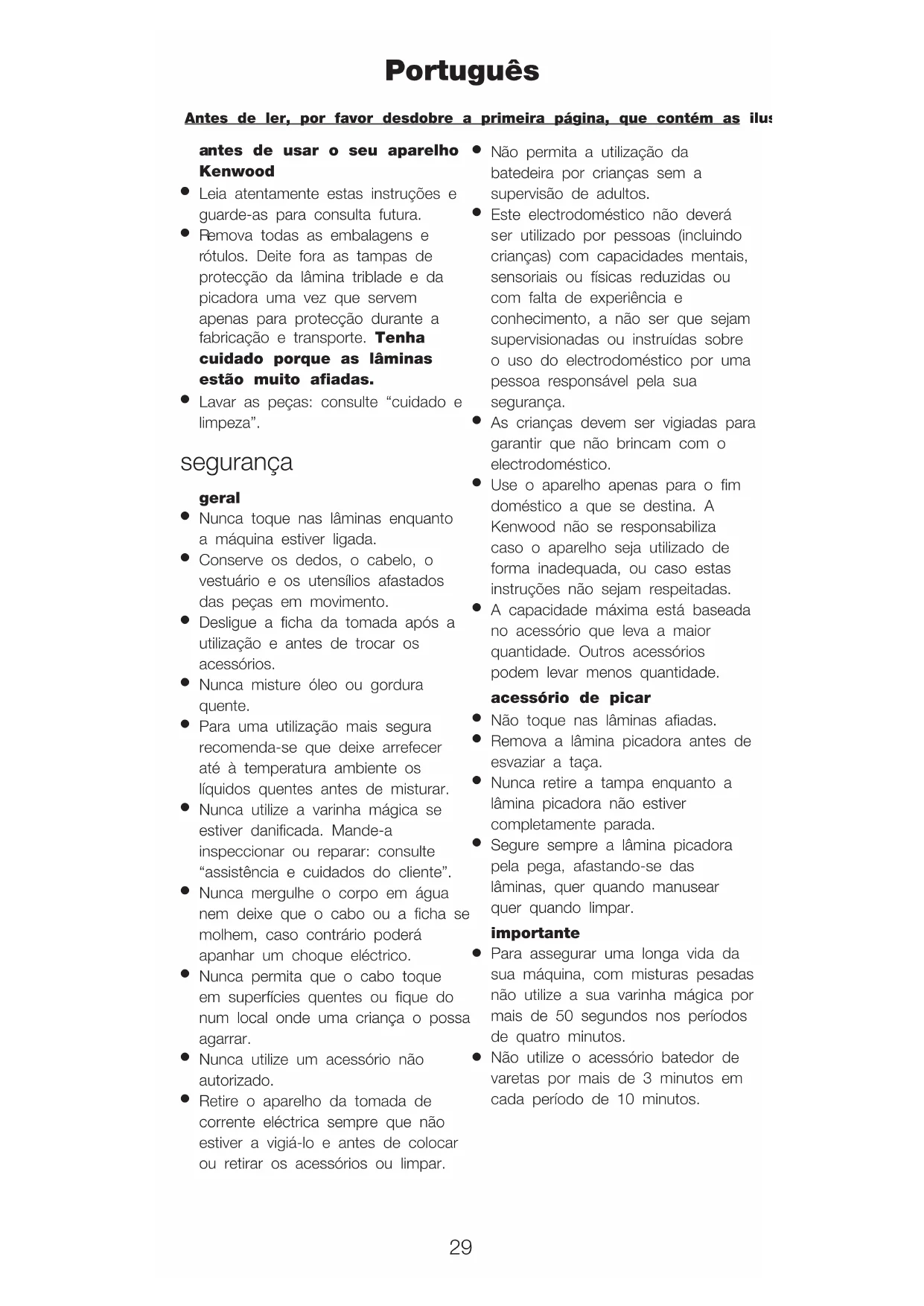 doméstico a que se destina. A Kenwood não se responsabiliza