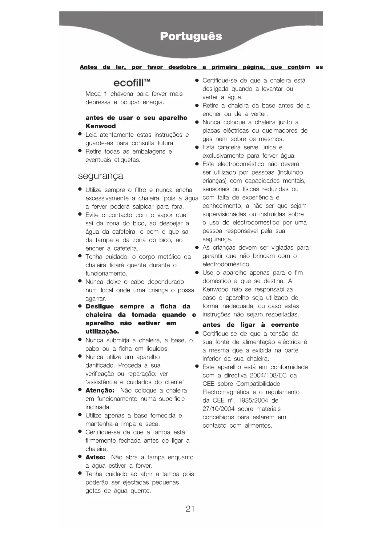 antes de usar o seu aparelho