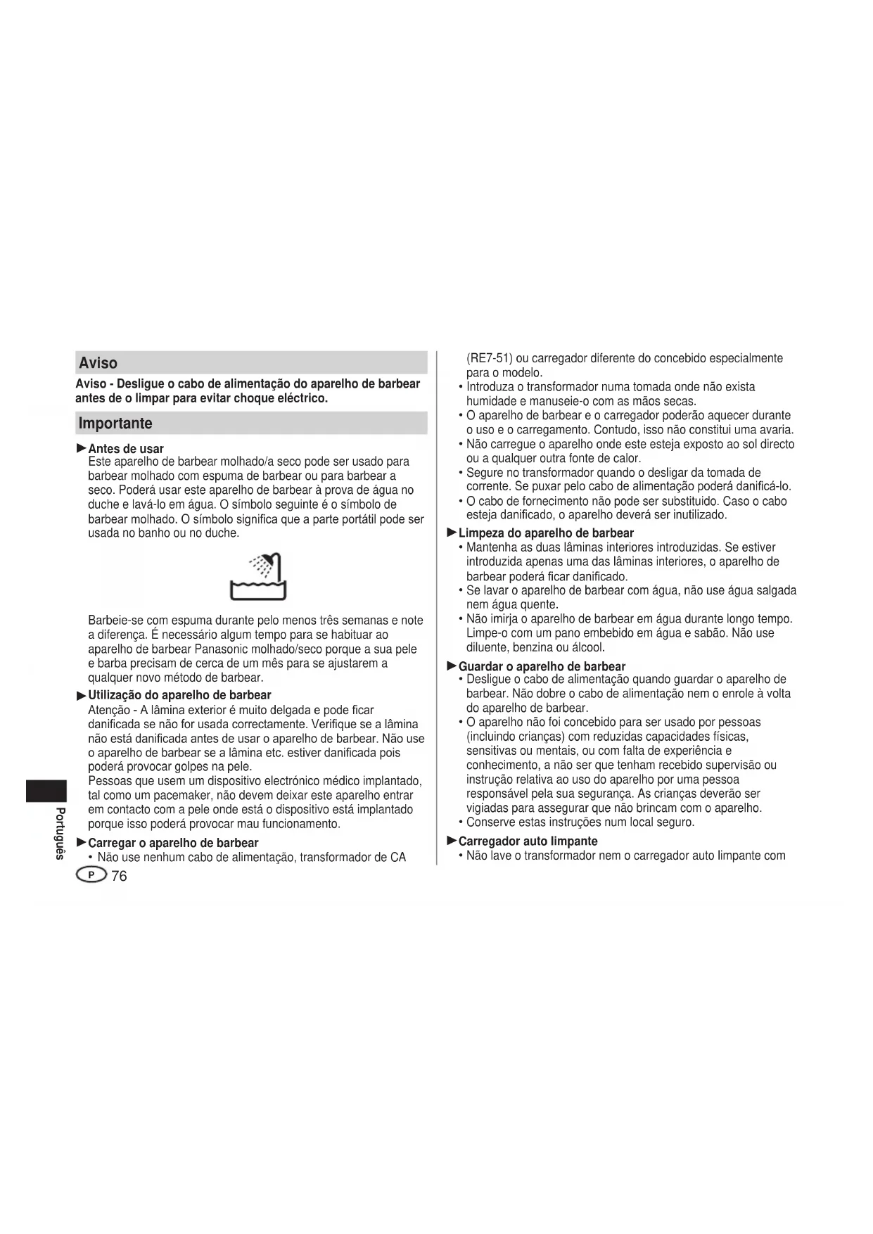 Não imirja o aparelho de barbear em água durante longo tempo.
