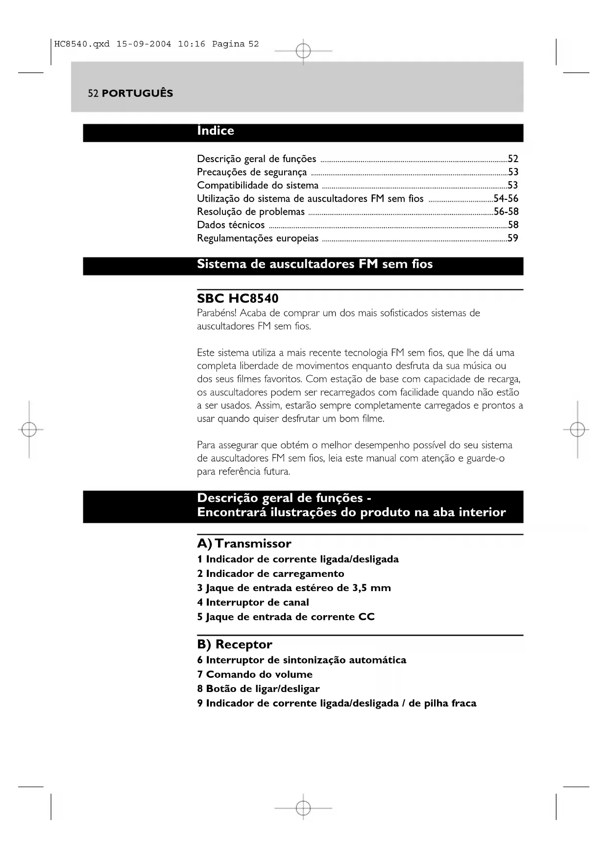 HC8540.qxd 15-09-2004 10:16 Pagina 5354 PORTUGUÊS Utilização do sistema de auscultadores FM sem fios