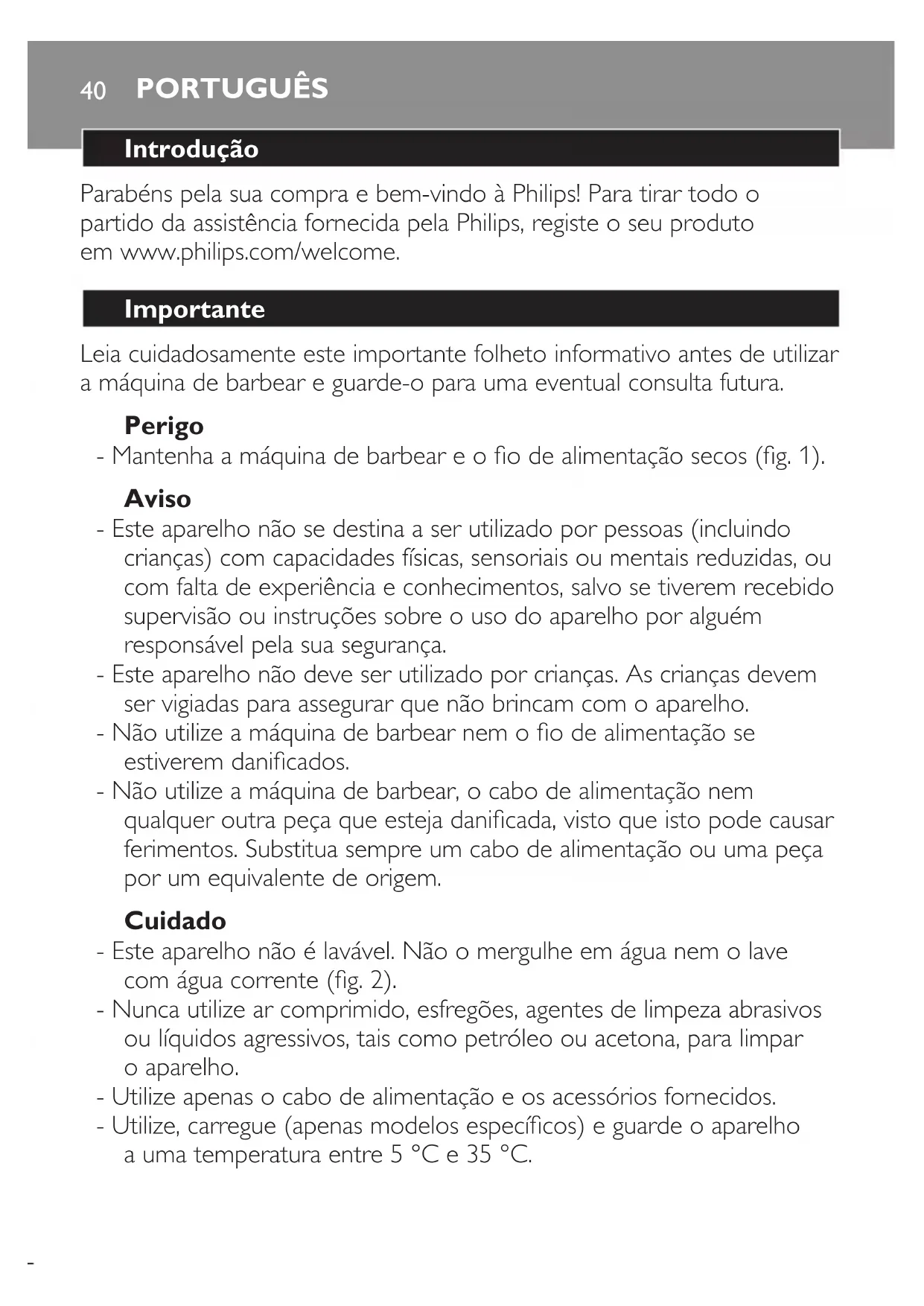 - Mantenha o barbeador e o cordão elétrico secos (g. 1).