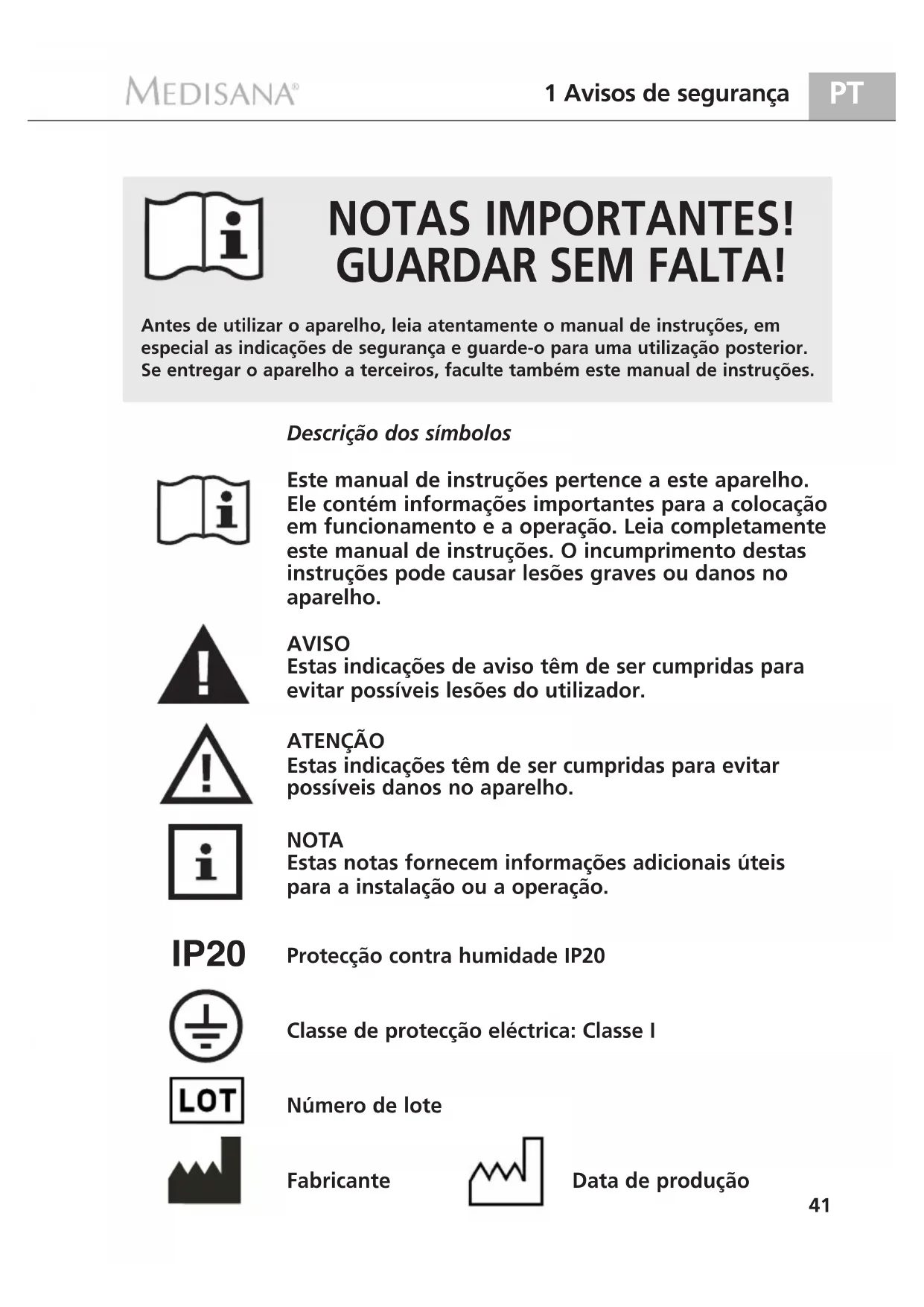 - Aos produits MEDISANA concedemos uma garantia de tres anos a partir da data de compra. Em caso de garantia, a data de compra tem de ser comprovada atraves do recibo de compra ou factura.