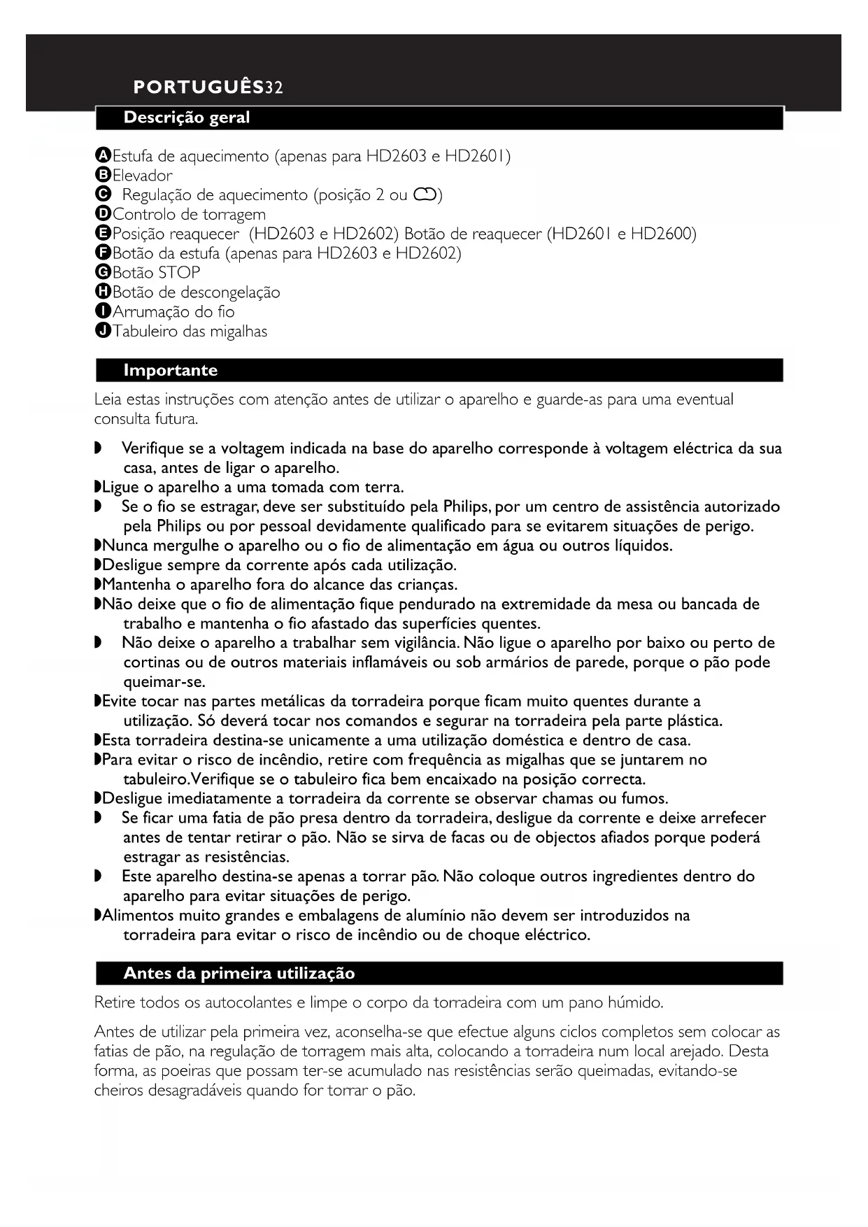 Daily Collection HD2601 - Torradeira PHILIPS - Manual de utilização gratuito