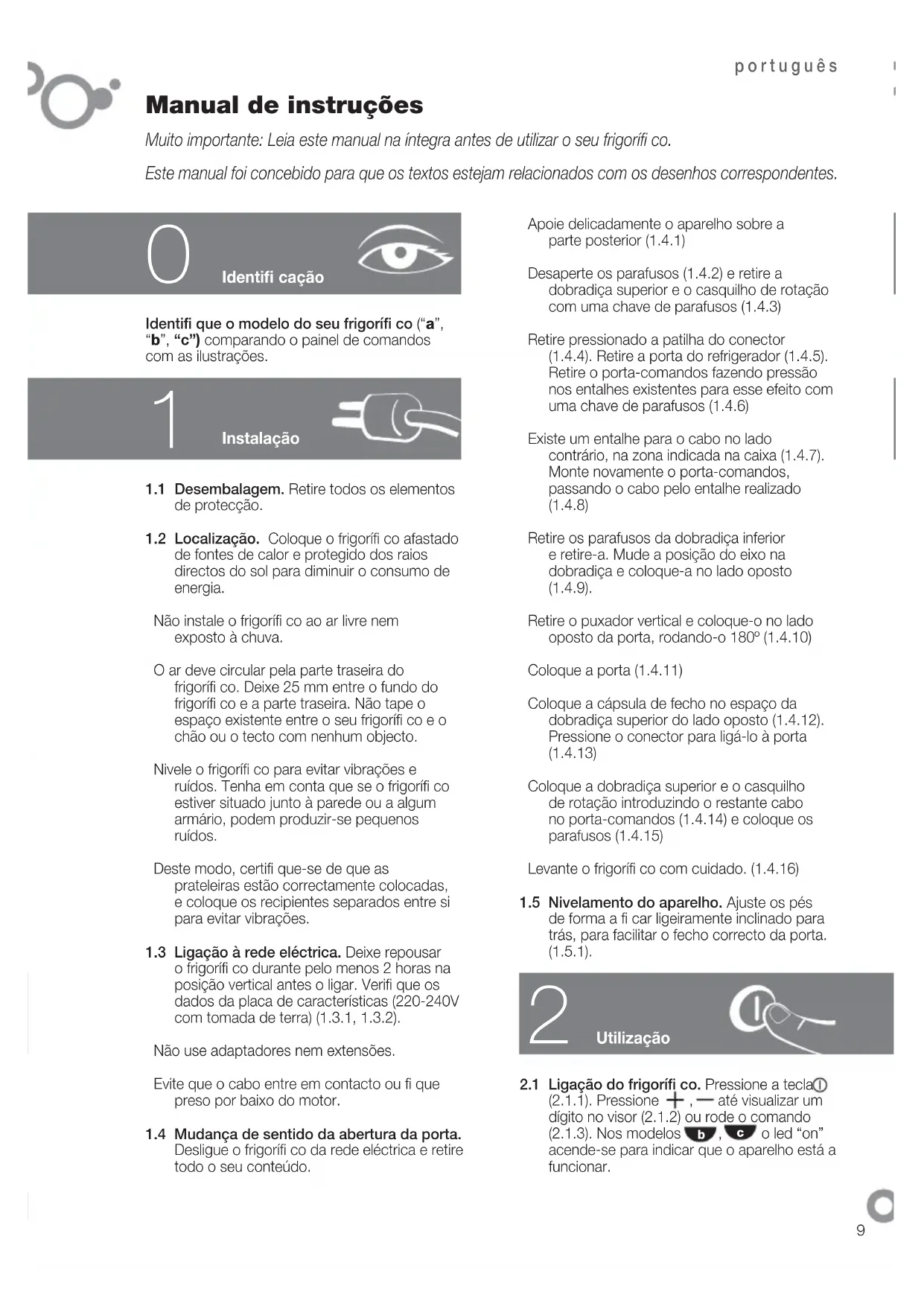 Muito importante: Leia este manual na íntegra antes de utilizar o seu frigorífi co.