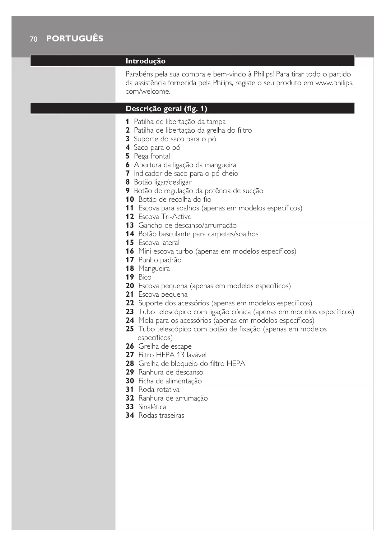 substitua sempre o ltro HEPA por um ltro Philips original do modelo correcto