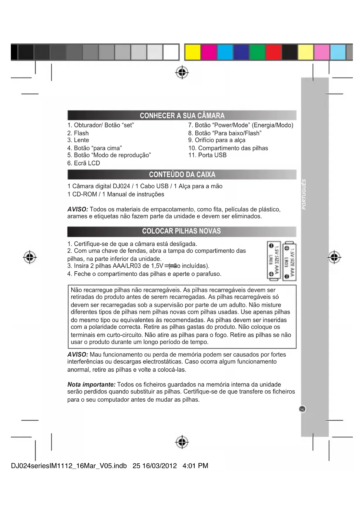 PORTUGUÊS CONHECER A SUA CÂMARA Não recarregue pilhas não recarregáveis. As pilhas recarregáveis devem ser