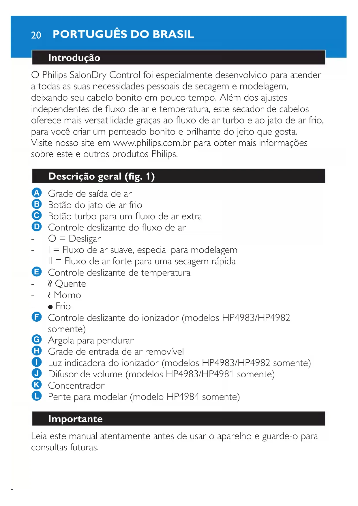 Encontre gratuitamente o manual do aparelho SalonDry Control HP4983 PHILIPS em formato PDF.
