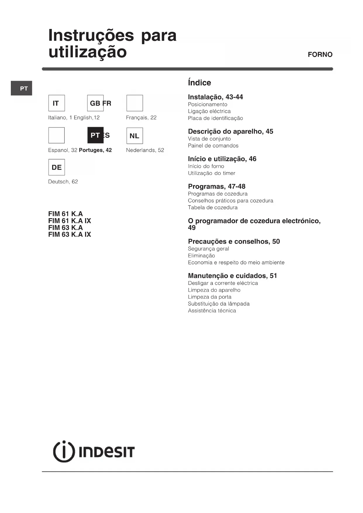 FIM 61 K.A IX - Forno INDESIT - Manual de utilização gratuito