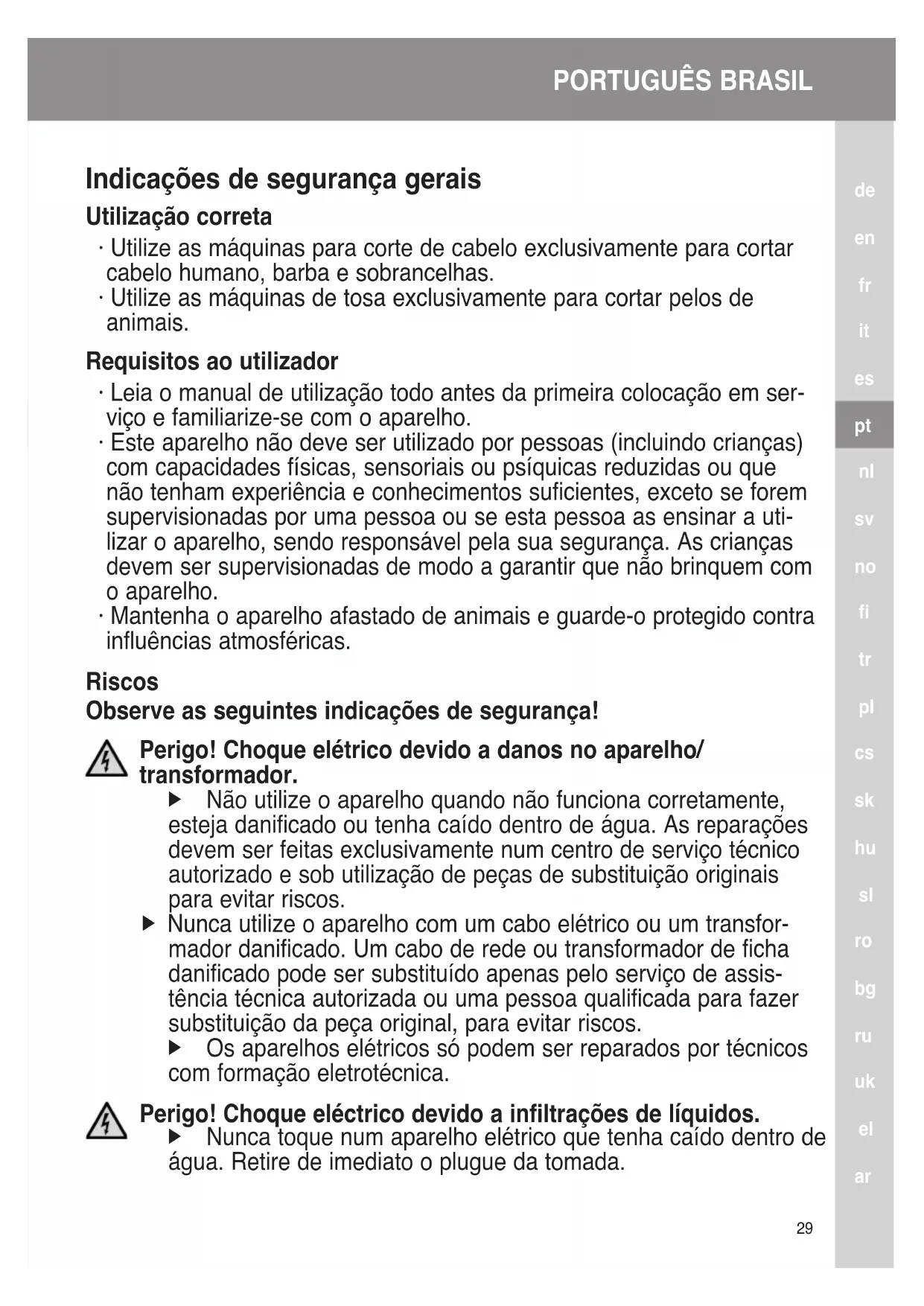 água. Retire de imediato o plugue da tomada.PORTUGUÊS BRASIL