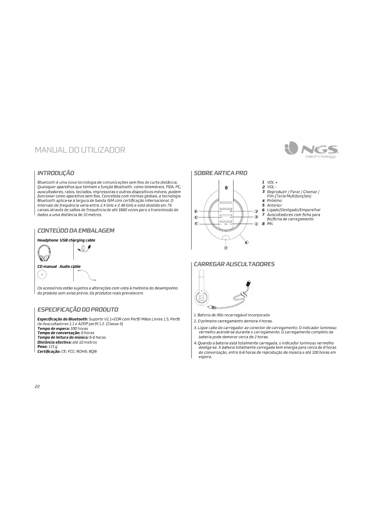 MANUAL DE UTILIZADOR White Artica Pro bluetooth NGS