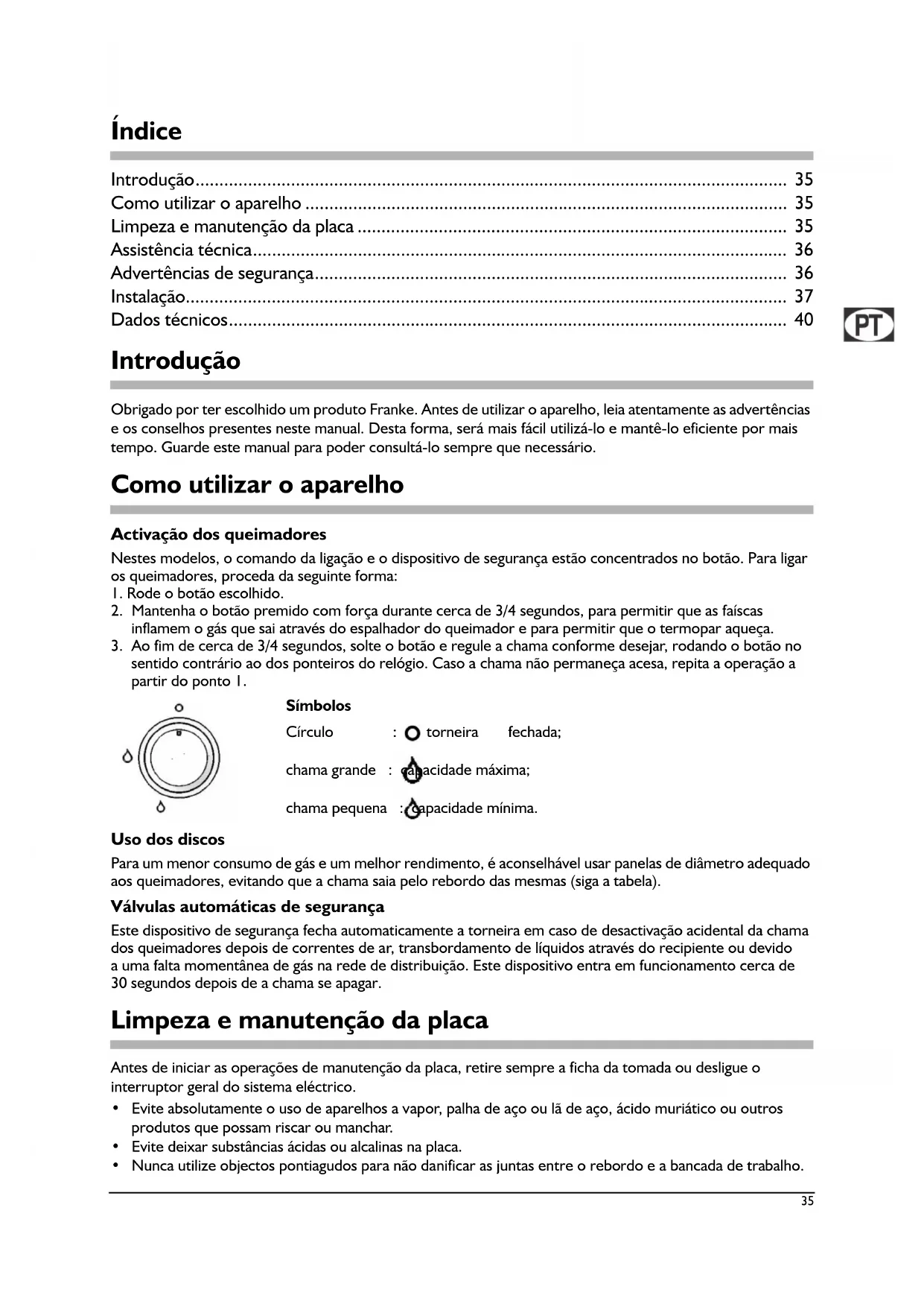 Instruções de utilização e instalação 35
