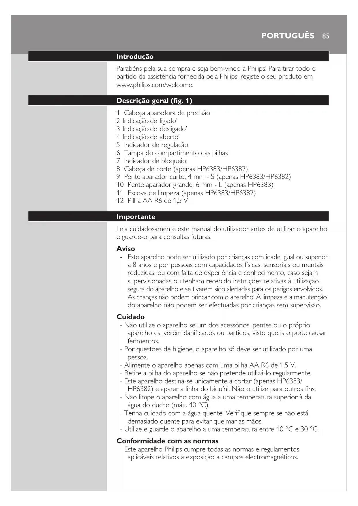 - Este aparelho Philips cumpre todas as normas e regulamentos
