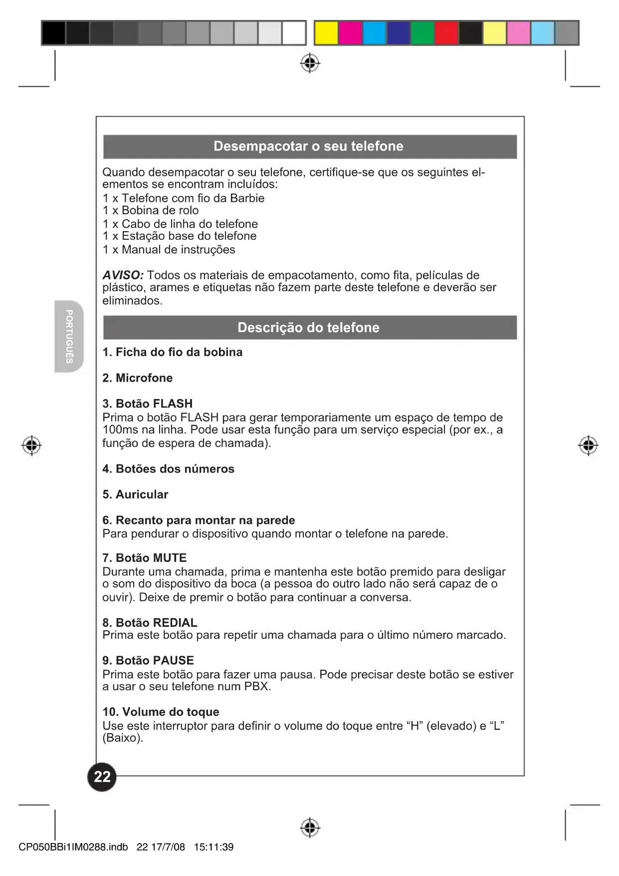 plástico, arames e etiquetas não fazem parte deste telefone e deverão ser
