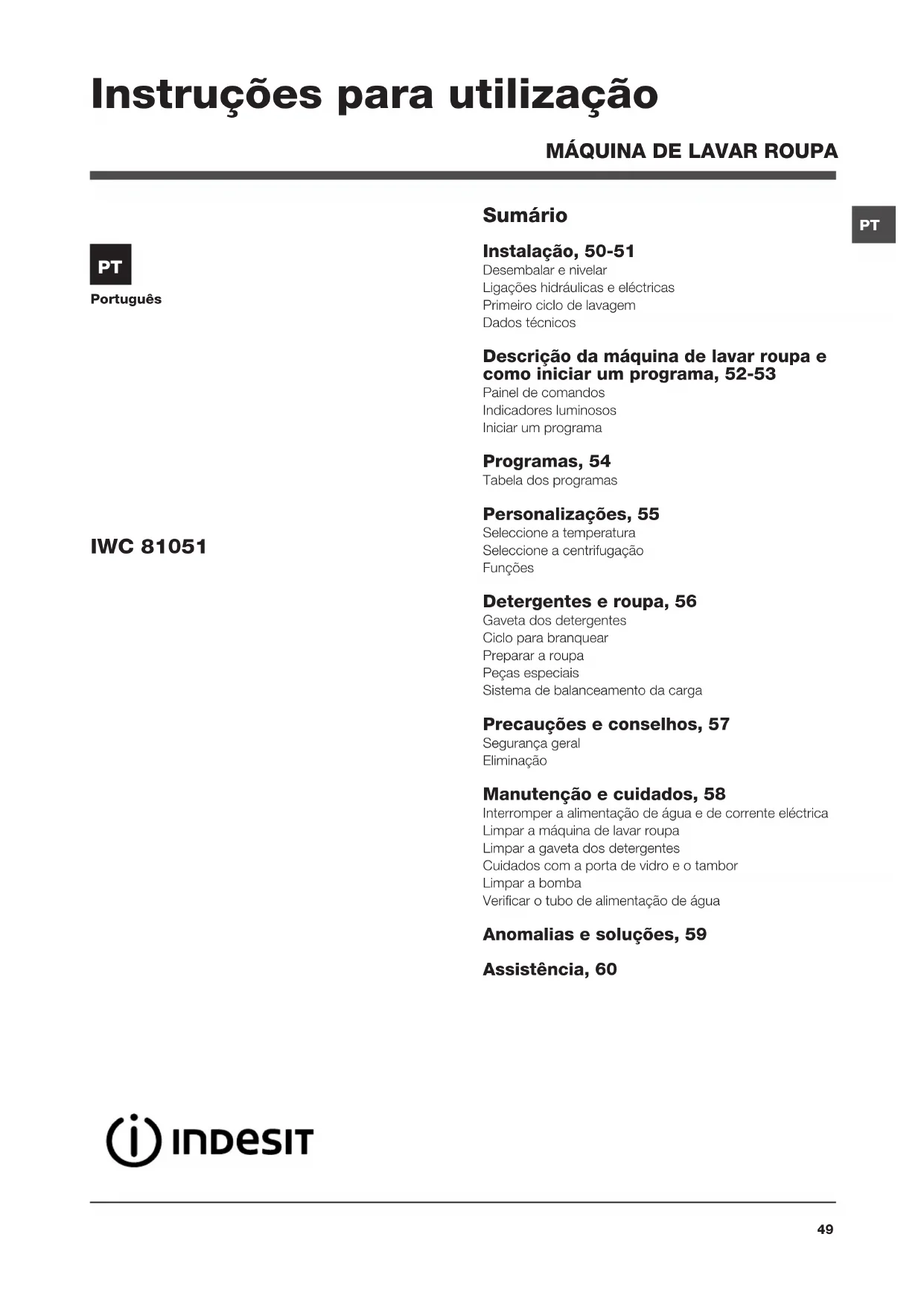 Encontre gratuitamente o manual do aparelho IWC 81051 C ECO(EU) INDESIT em formato PDF.