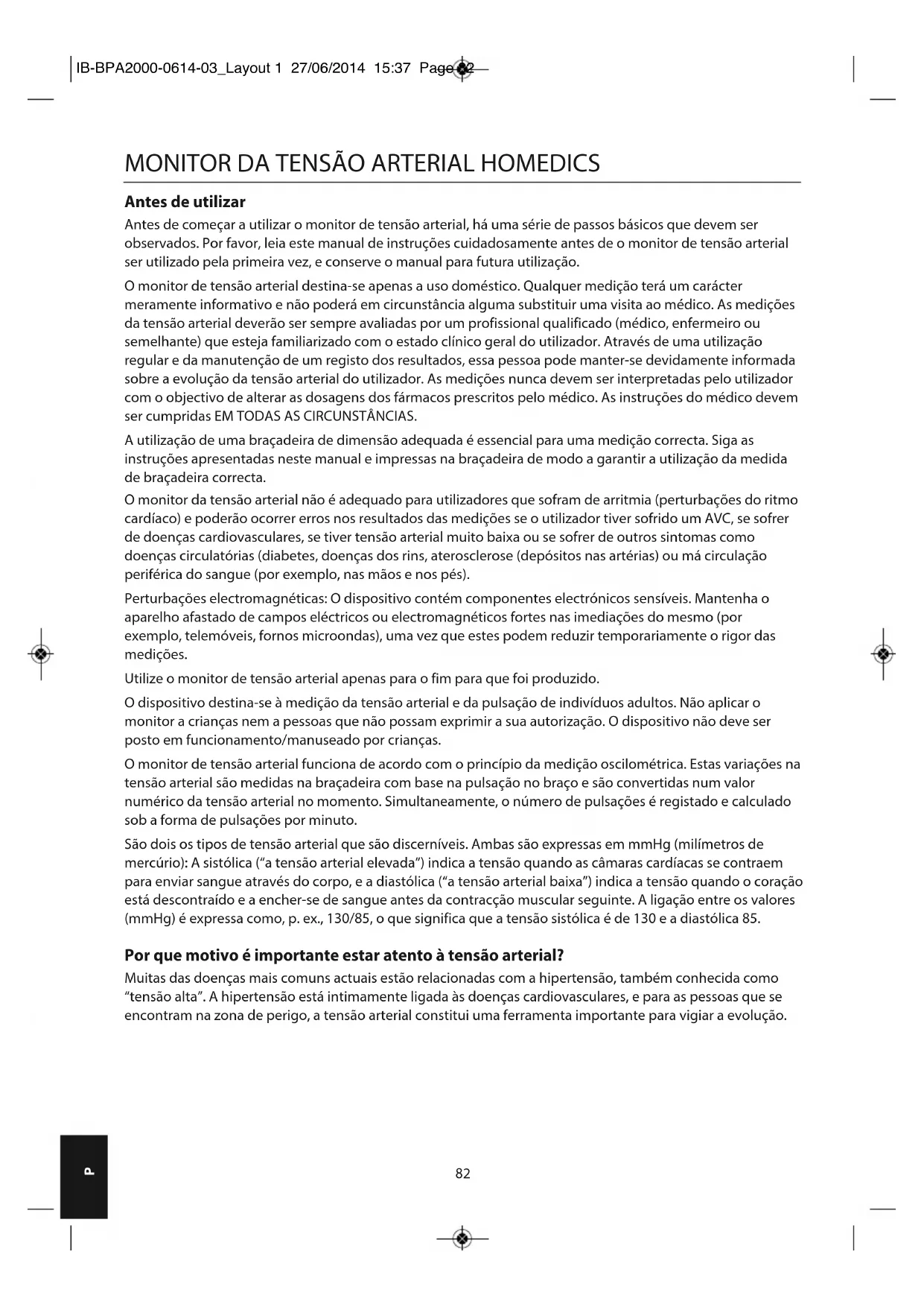 Encontre gratuitamente o manual do aparelho BPA2000EU HOMEDICS em formato PDF.