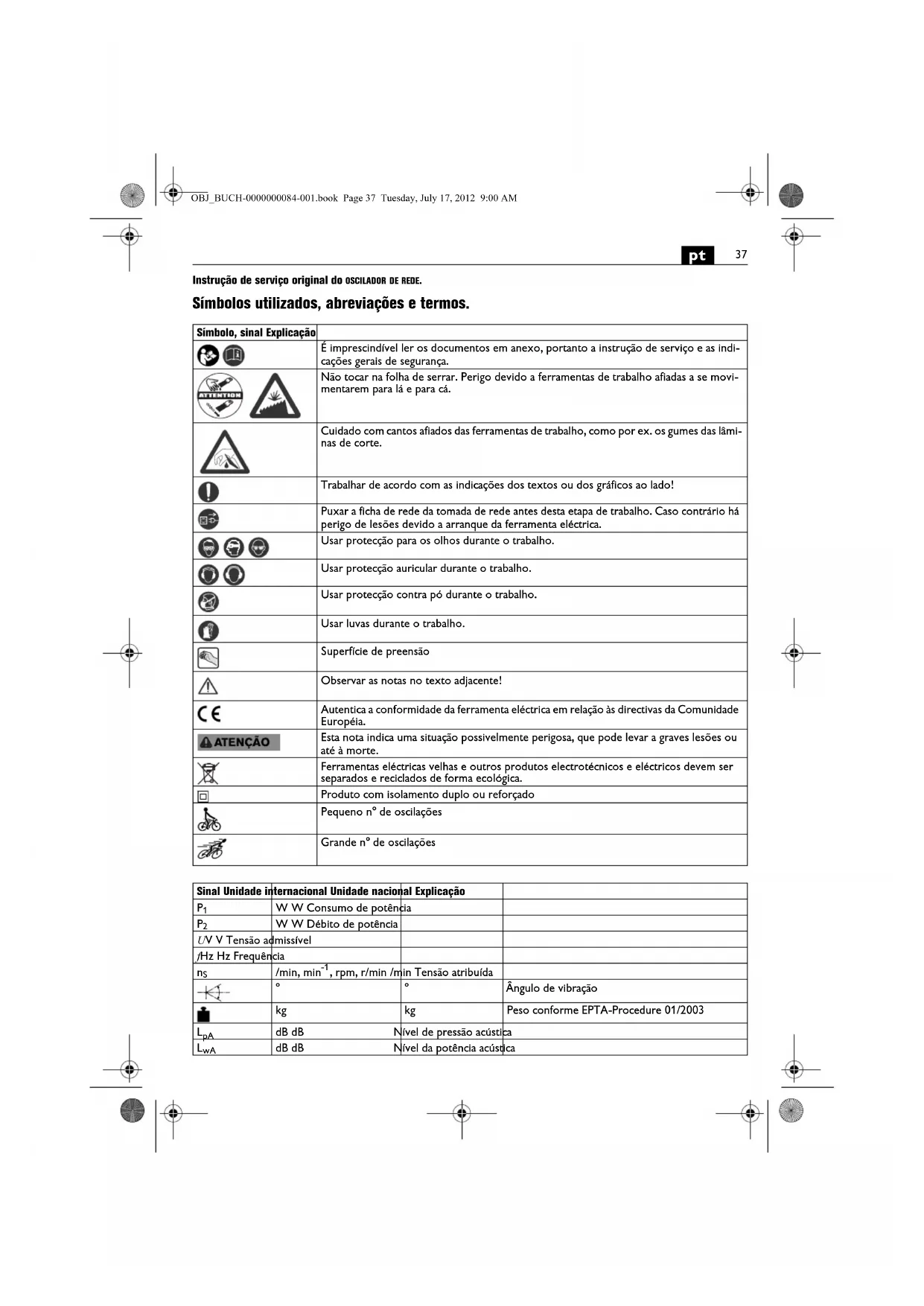 O nível de oscilações indicado nestas instruções de serviço foi medico de acordo com umprocesso de medicão normalzado pela norma EN 60745 e pode serutilizando para a comparação de aparelhos. Ele tambem éapropriado para uma avaliação preliminar da energia de vibrações.