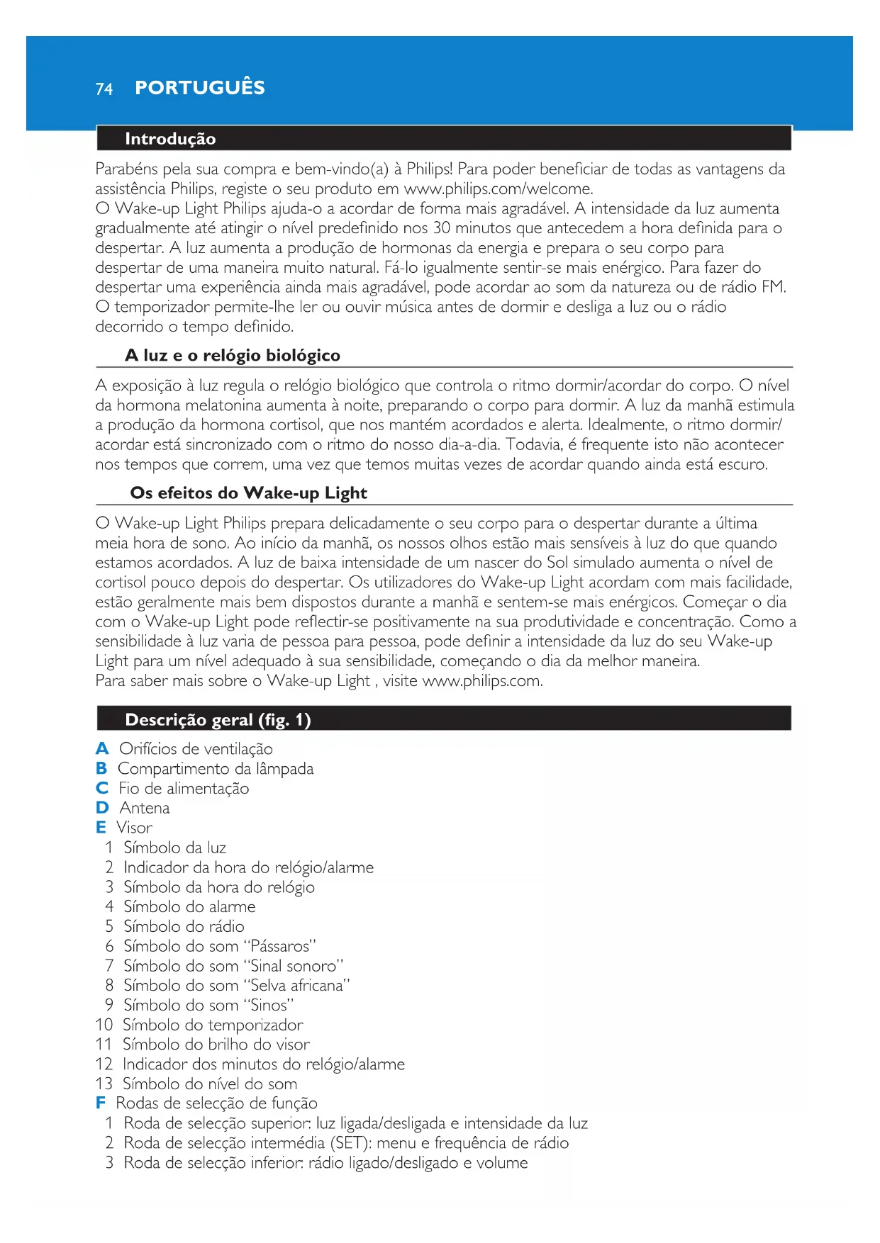 Encontre gratuitamente o manual do aparelho Wakeup Light HF3476 PHILIPS em formato PDF.