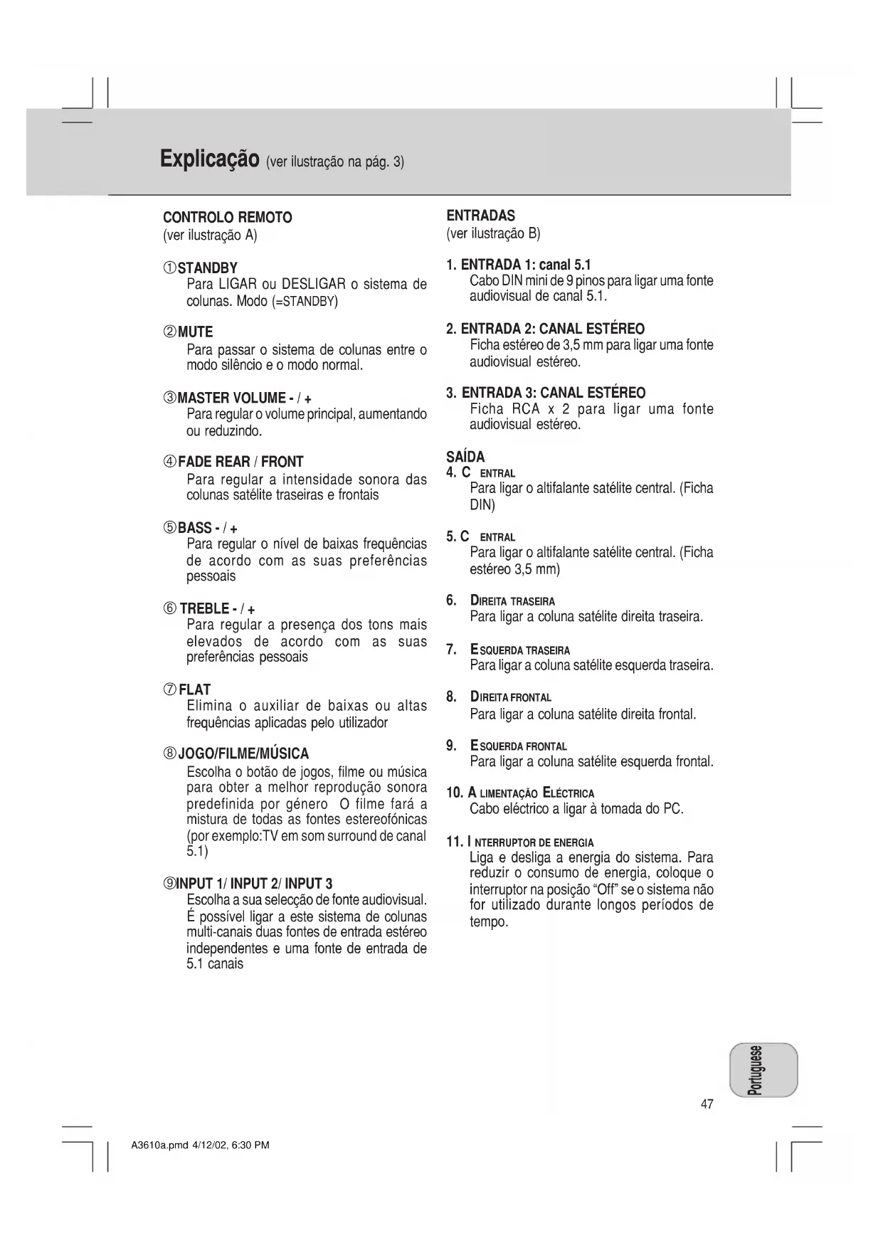 MANUAL DE UTILIZADOR A3.610 PHILIPS