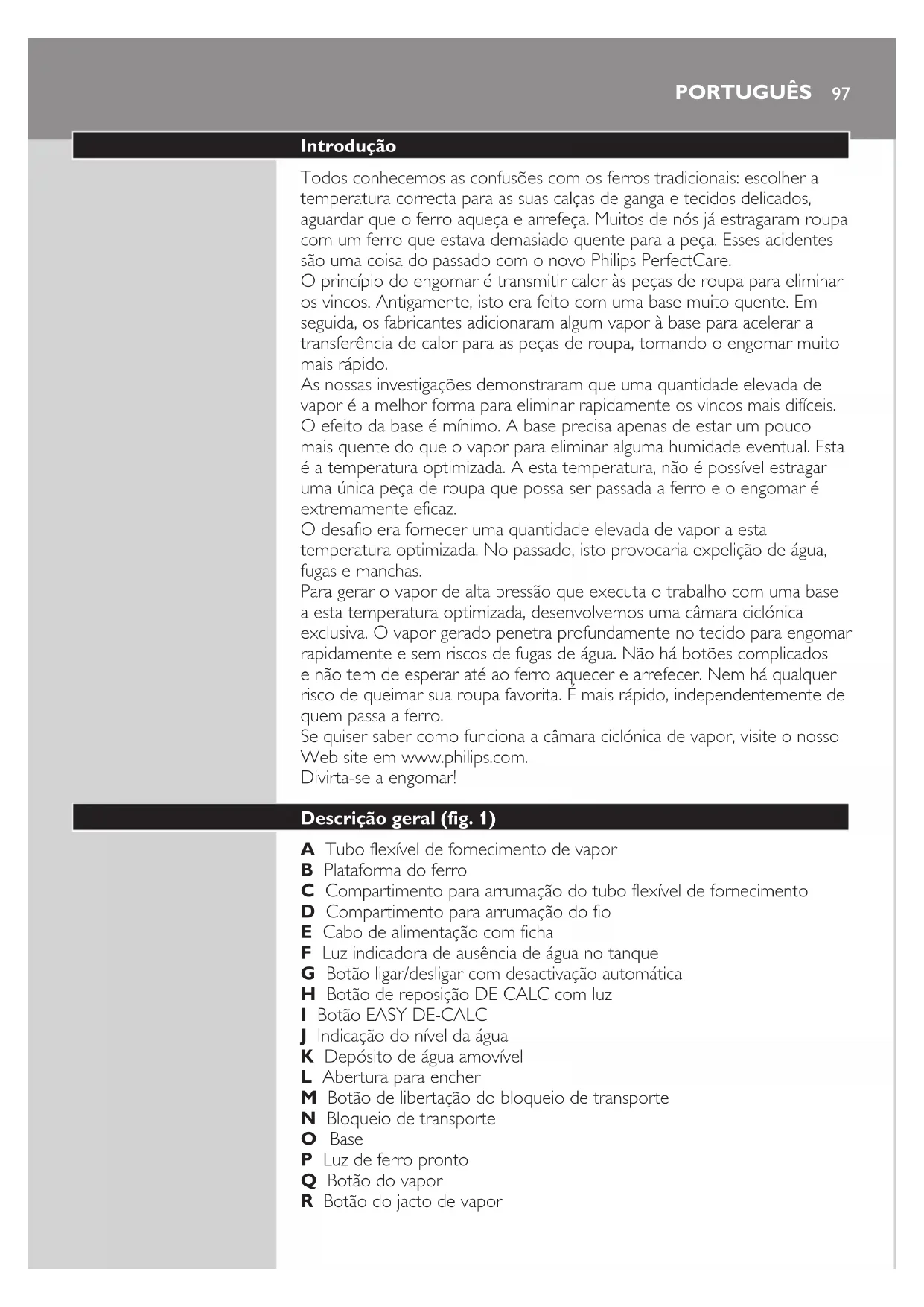 MANUAL DE UTILIZADOR PerfectCare GC9245 PHILIPS