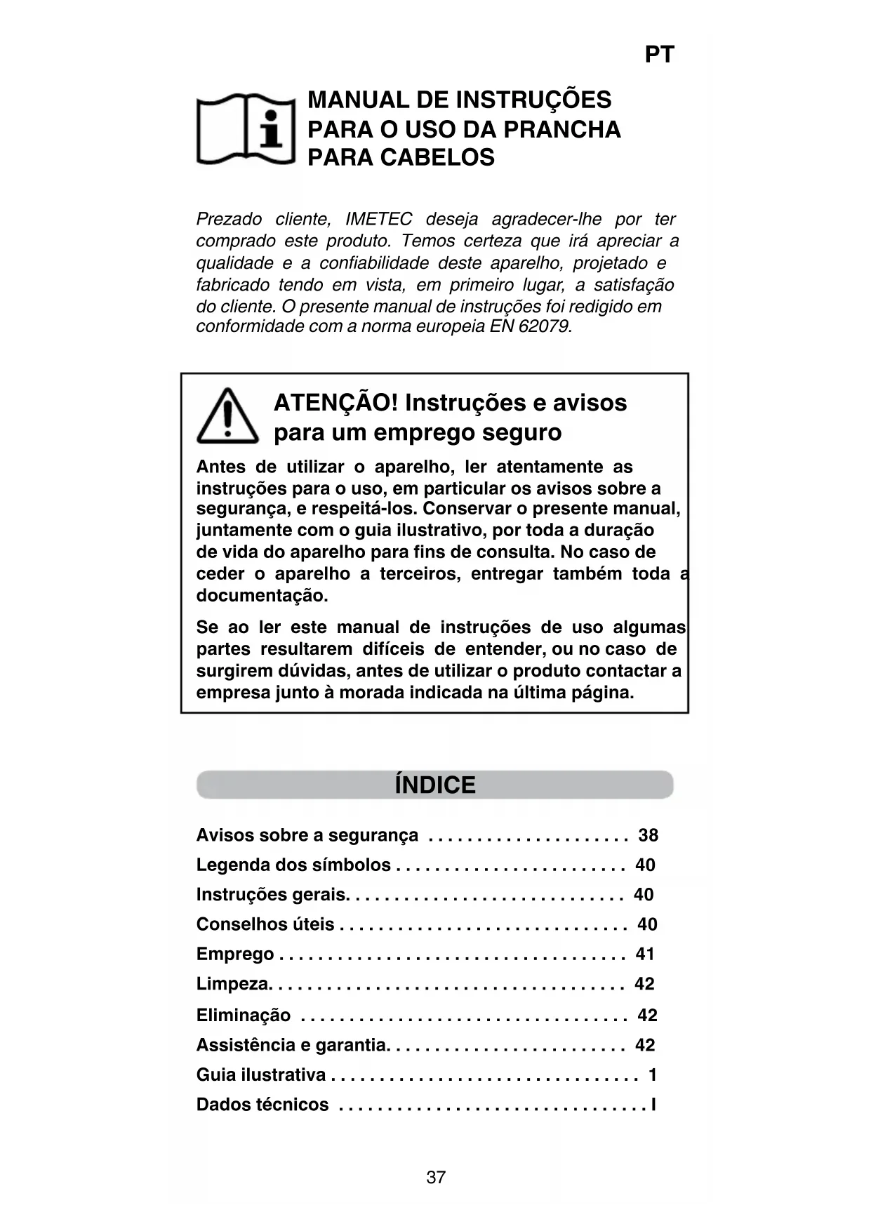 MANUAL DE INSTRUçõES PARA O USO DA PRANCHA PARA CABELOS Prezado cliente, IMETEC deseja agradecer-lhe por ter