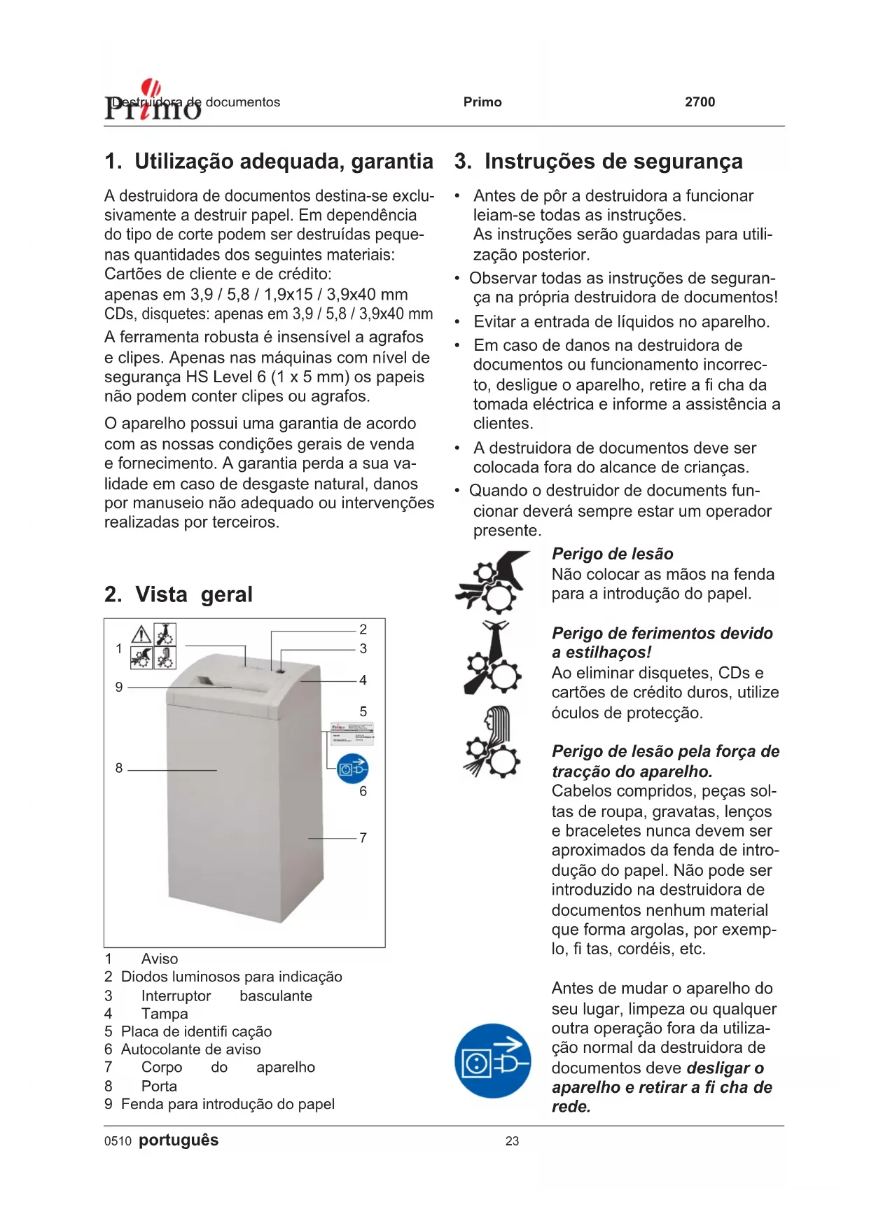 2700 Office - Fragmentadora de papel PRIMO - Manual de utilização gratuito
