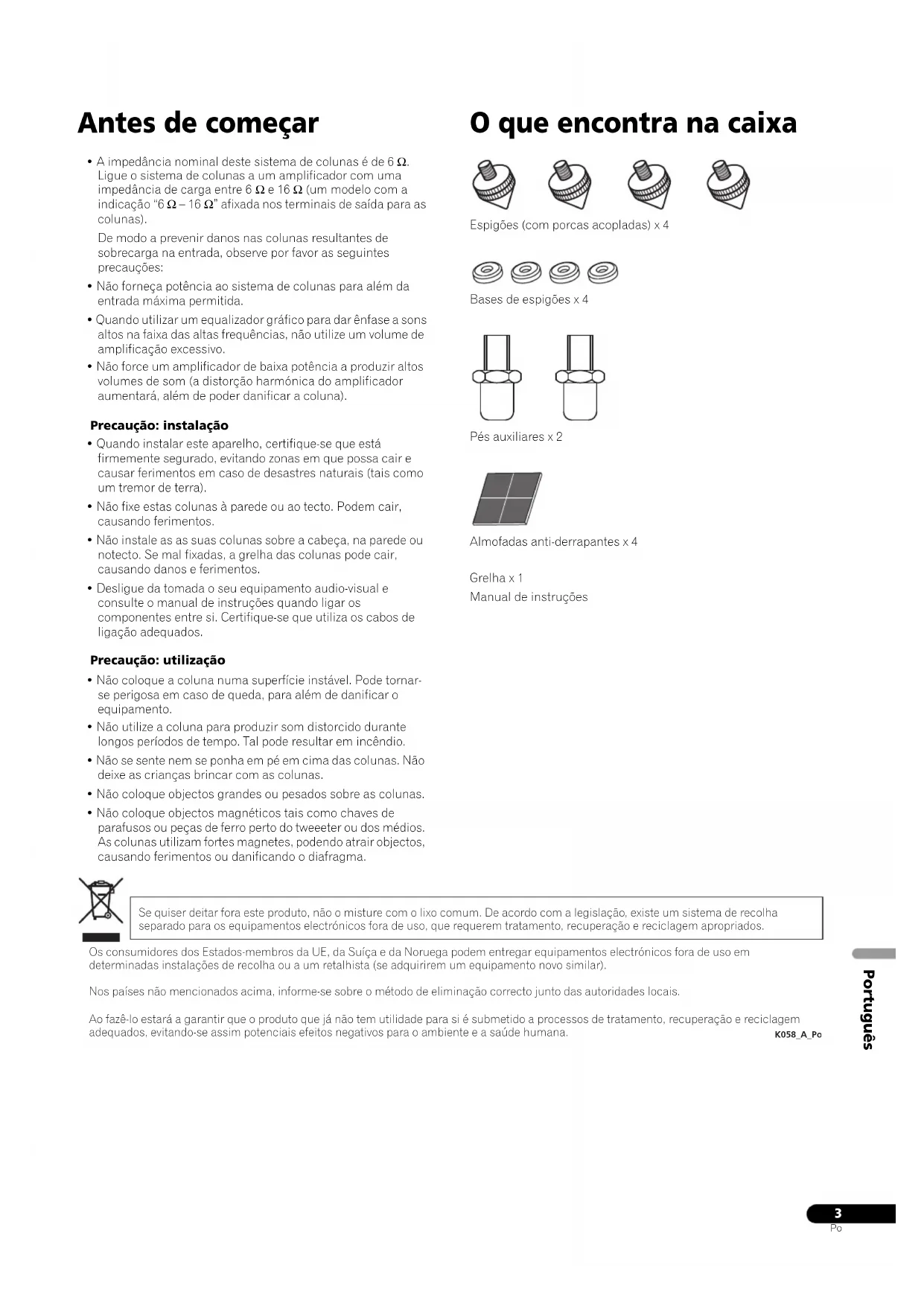 K058_A_Po Se quiser deitar fora este produto, não o misture com o lixo comum. De acordo com a legislação, existe um sistema de recolha