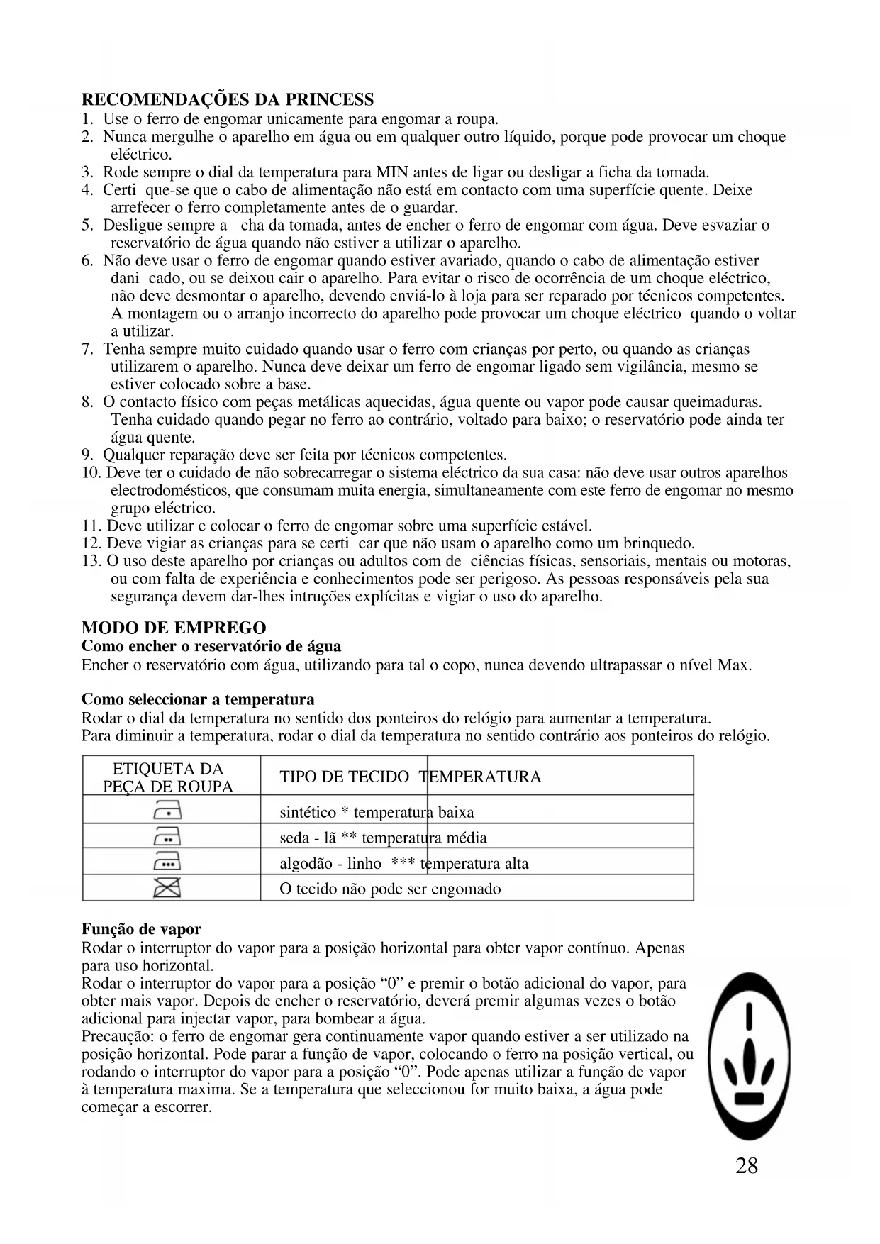 322413 - Ferro de passar PRINCESS - Manual de utilização gratuito