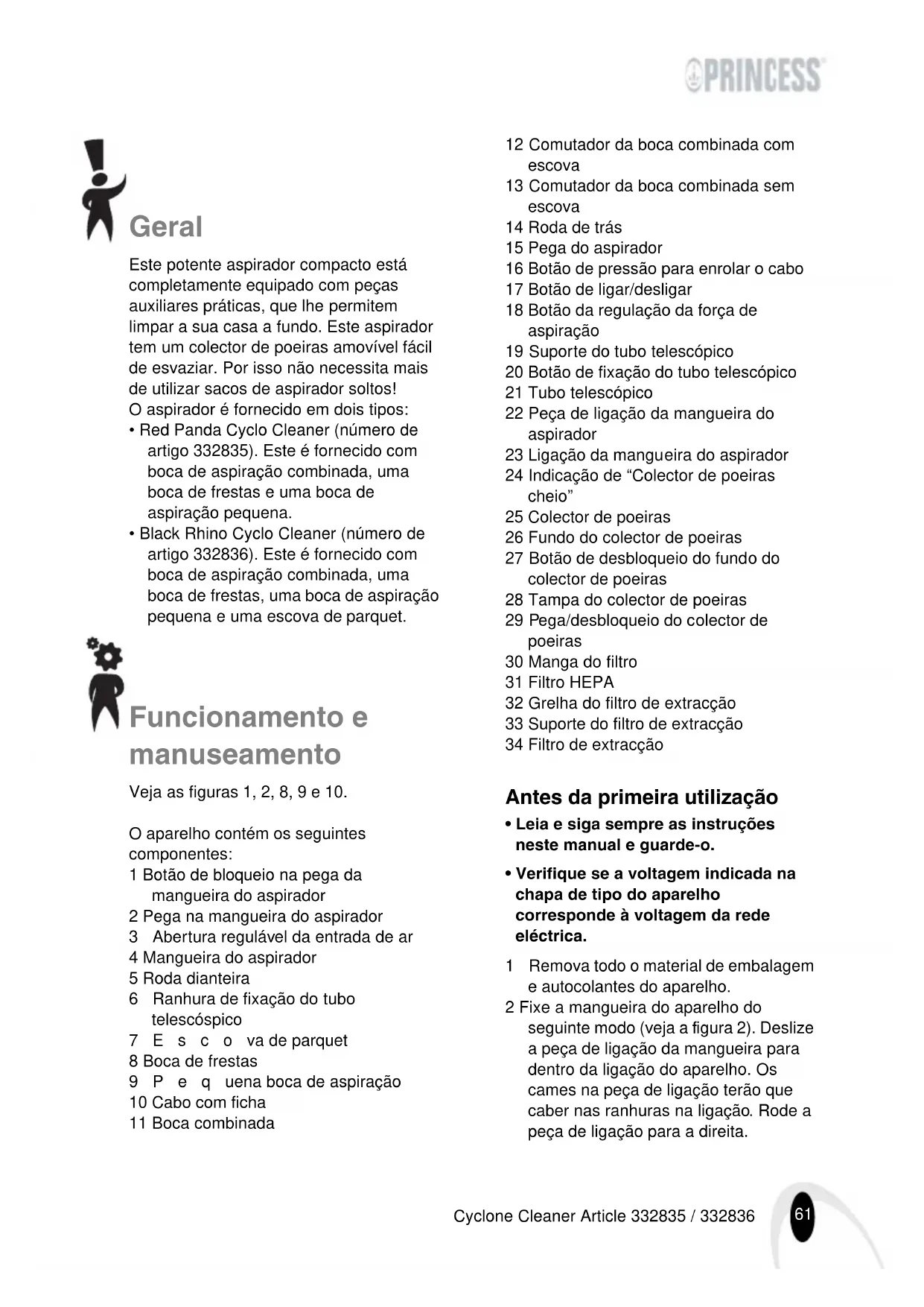 332836 - Aspirador PRINCESS - Manual de utilização gratuito