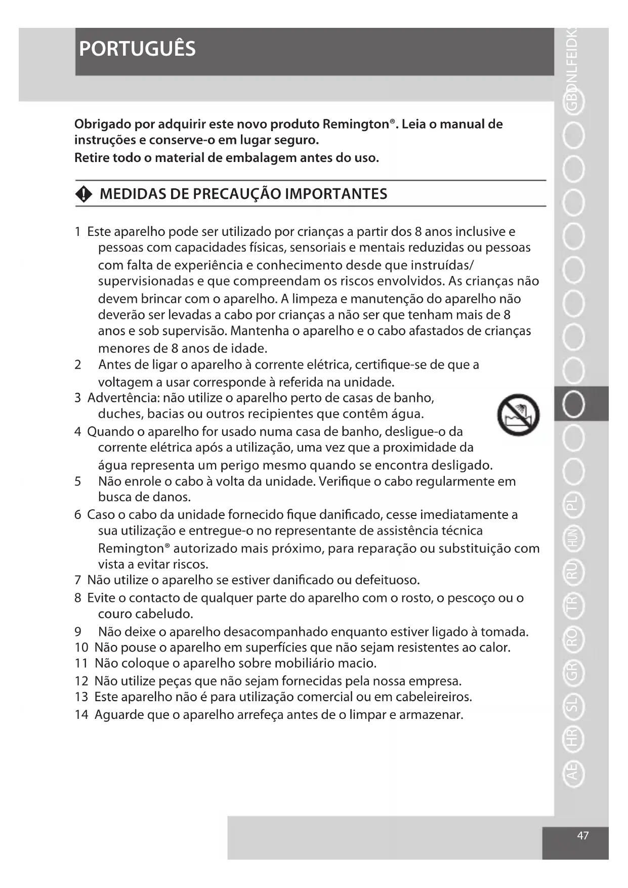 Encontre gratuitamente o manual do aparelho CI96S1 REMINGTON em formato PDF.