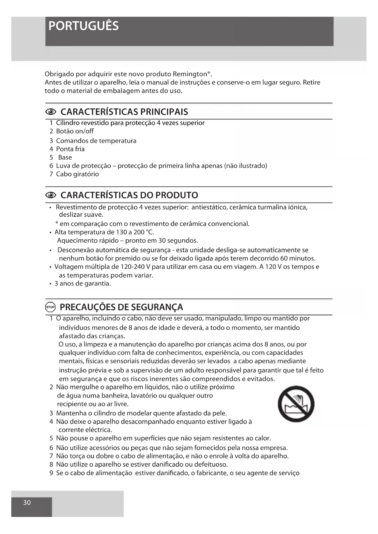 PORTUGUÊS Obrigado por adquirir este novo produto Remington®.