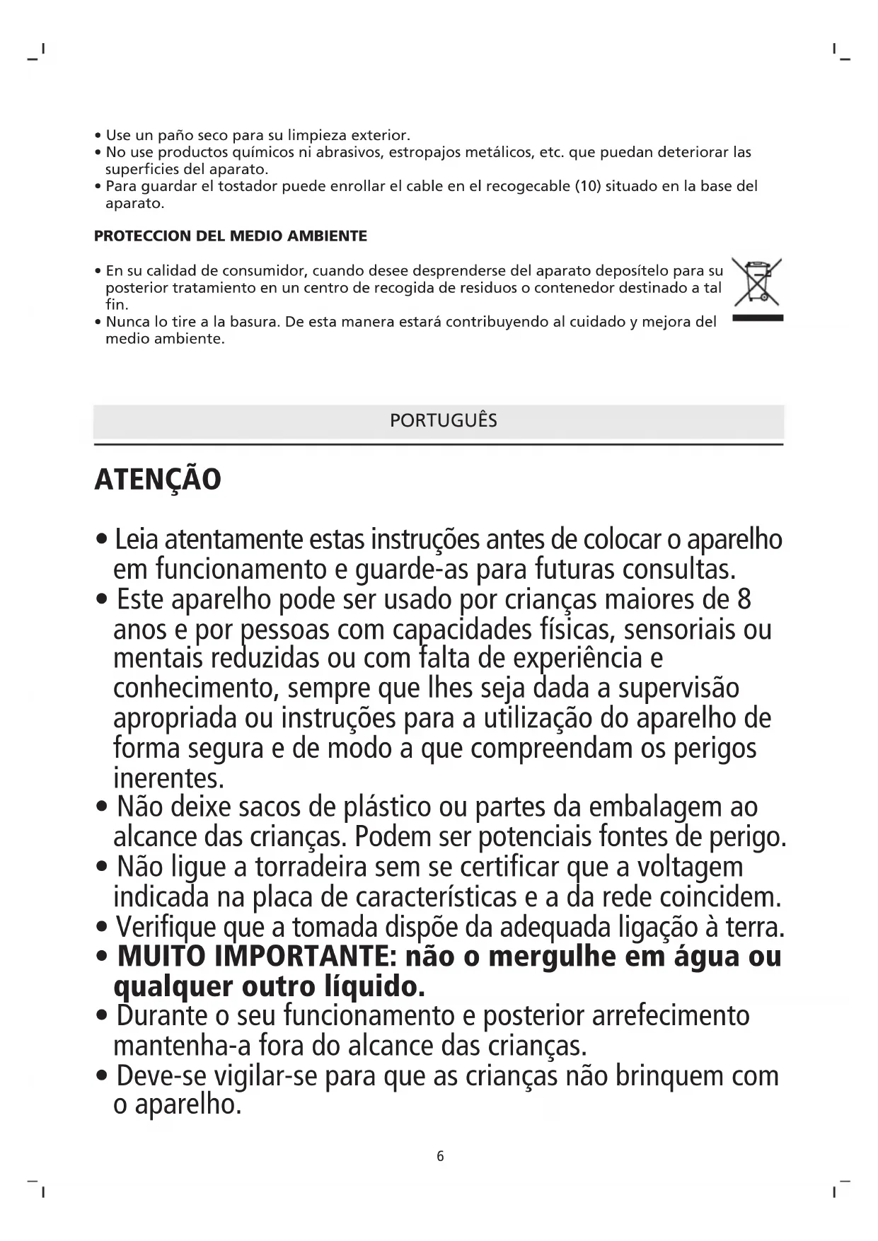 - Não utilize a torradeira para qualquer outro fim que não seja o de torrar pão.