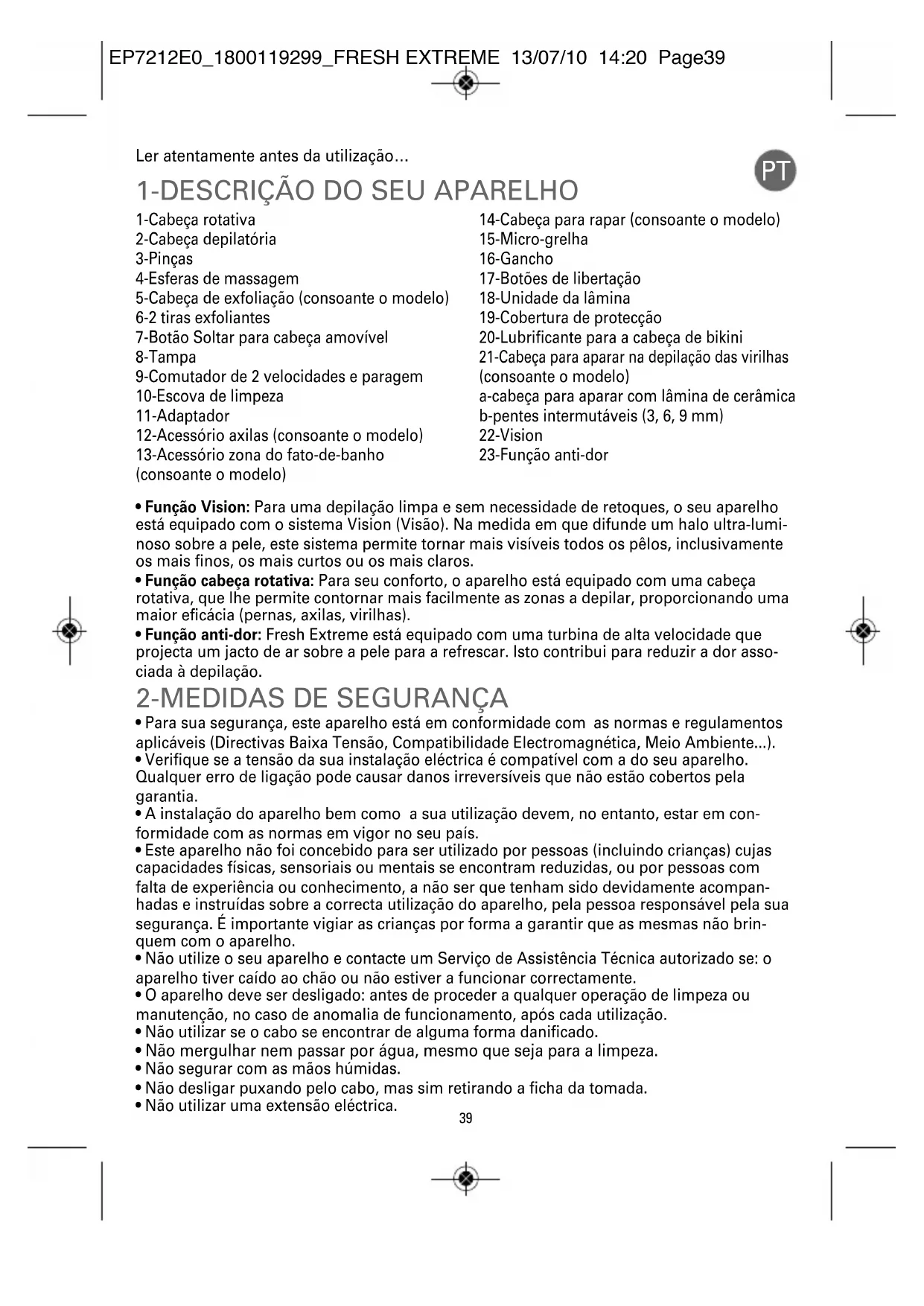 • Função cabeça rotativa: Para seu conforto, o aparelho está equipado com uma cabeça