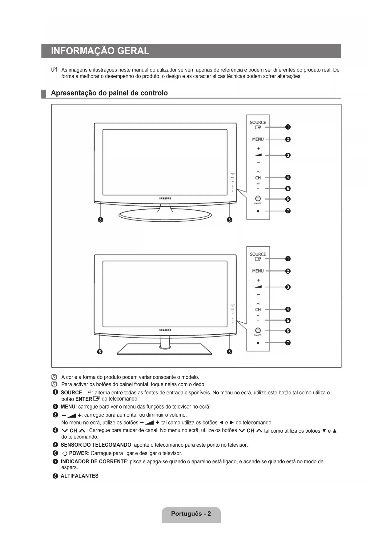 INFORMAÇÃO GERAL As imagens e ilustrações neste manual do utilizador servem apenas de referência e podem ser diferentes do produto real. De