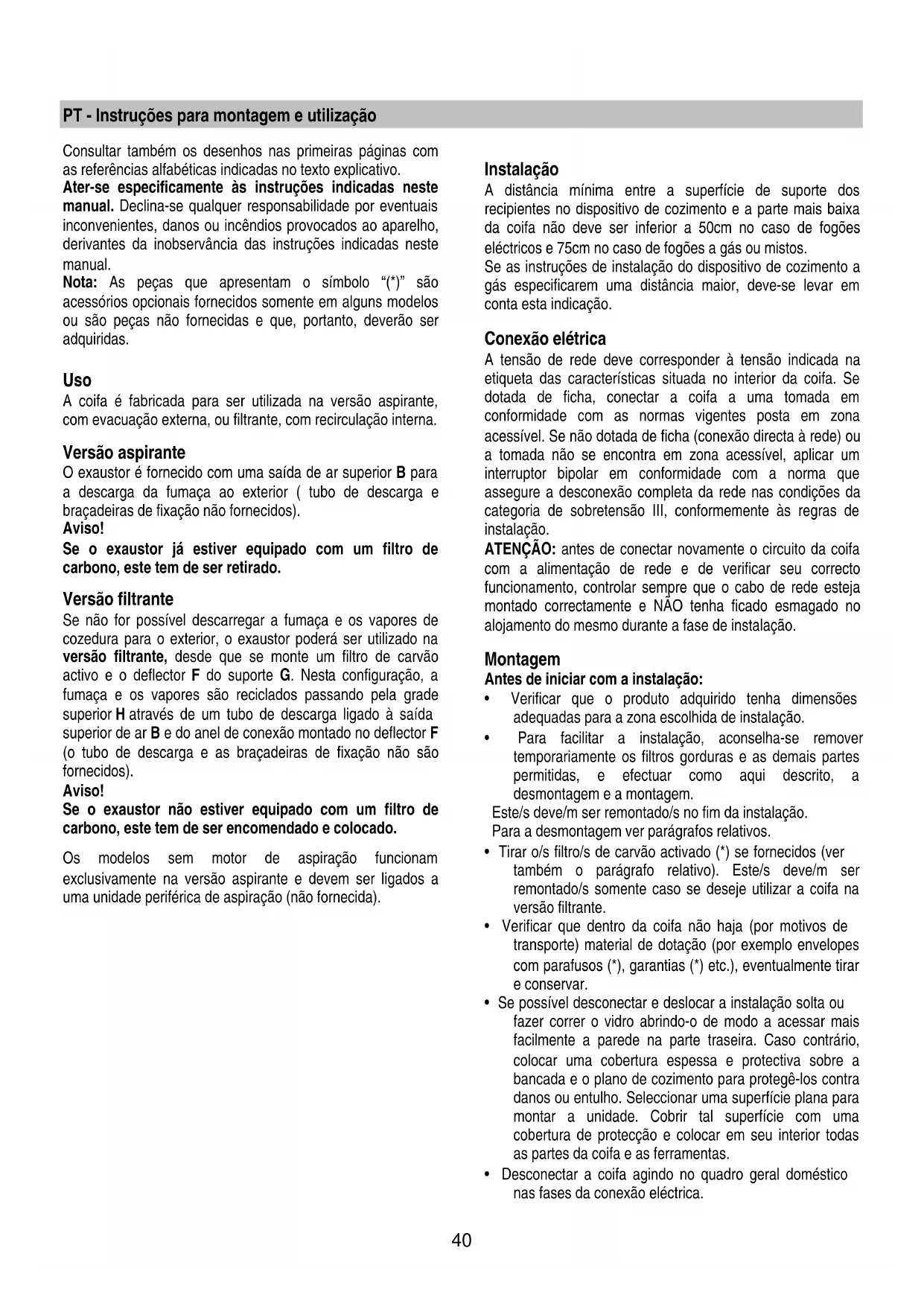 remontado/s somente caso se deseje utilizar a coifa na