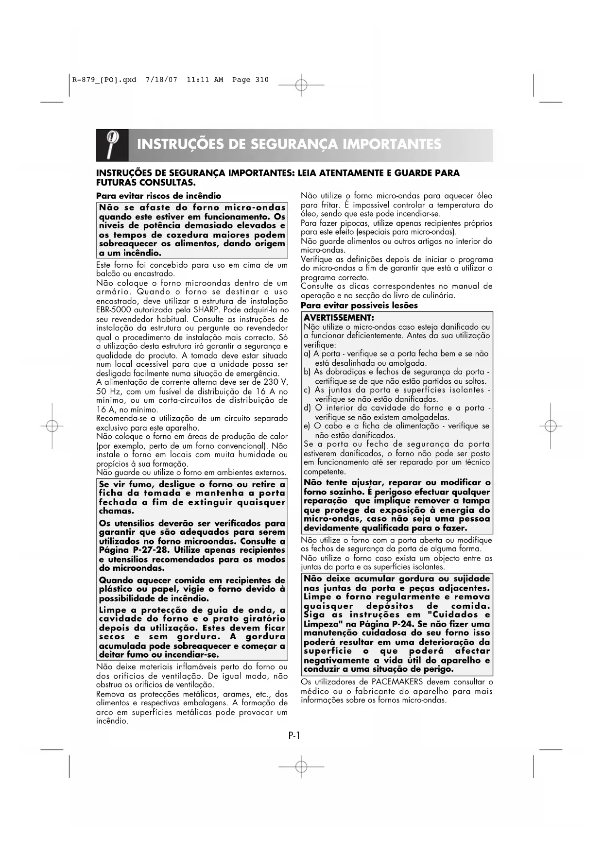 R879WH - Micro-ondas SHARP - Manual de utilização gratuito