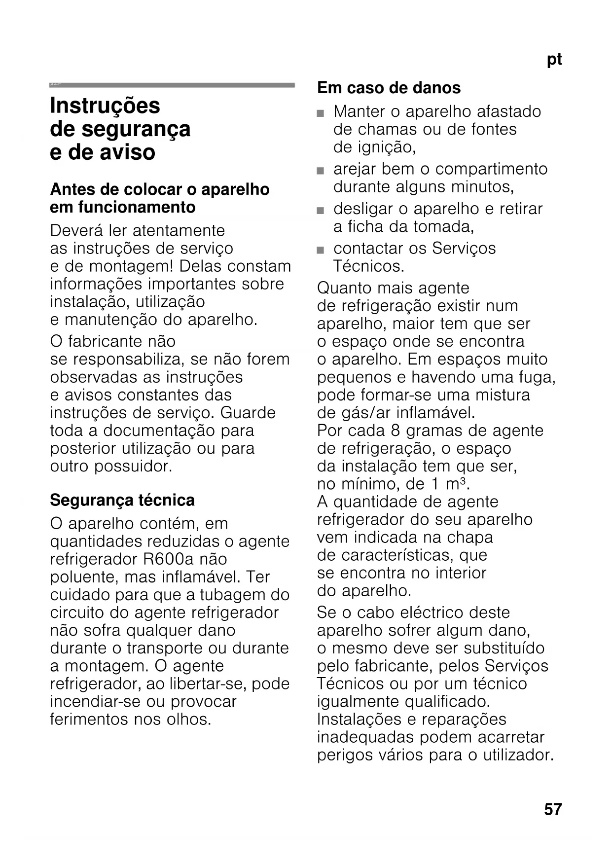 fazer gelados, etc.). Perigo de