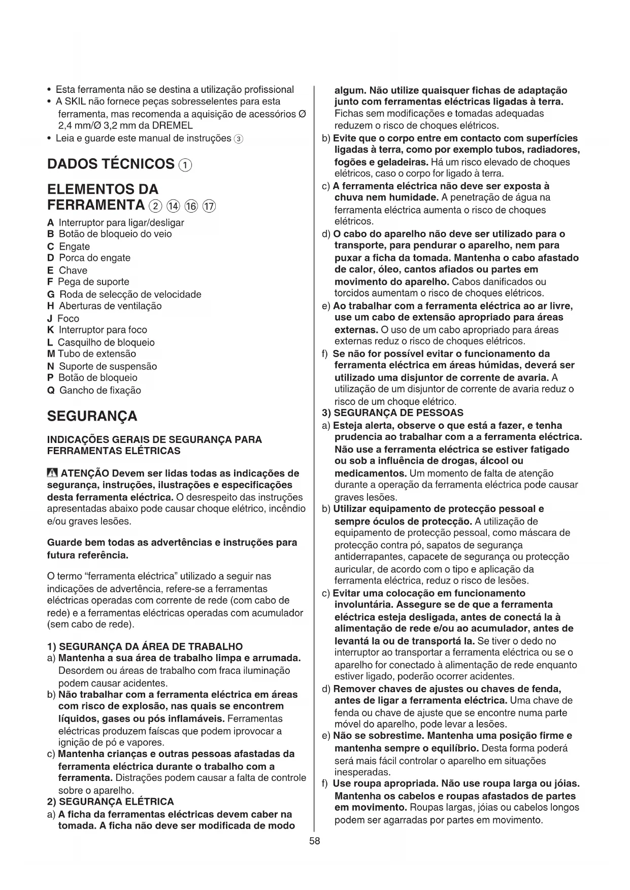 ferramenta estão mencionados no www.skil.com)