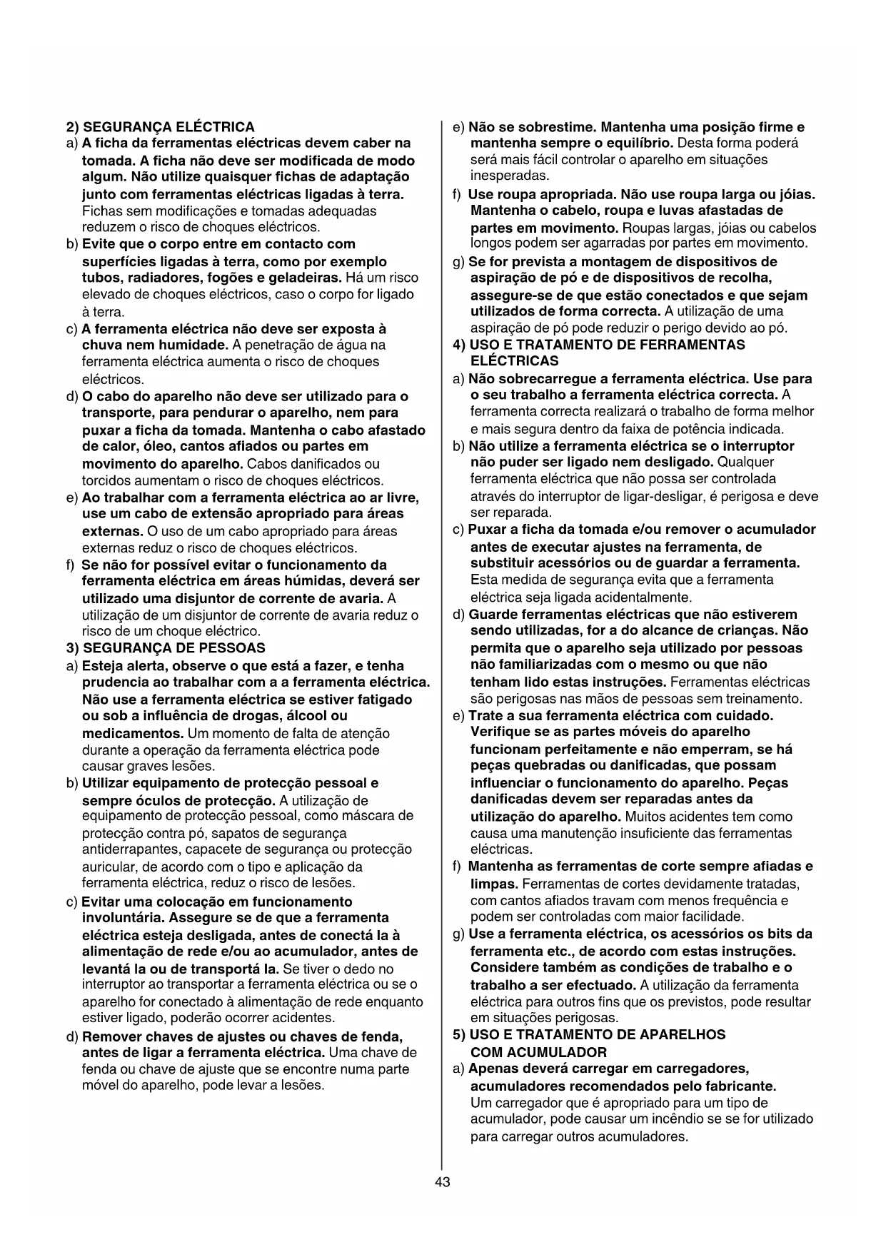 b) Não trabalhar com a ferramenta eléctrica em áreas