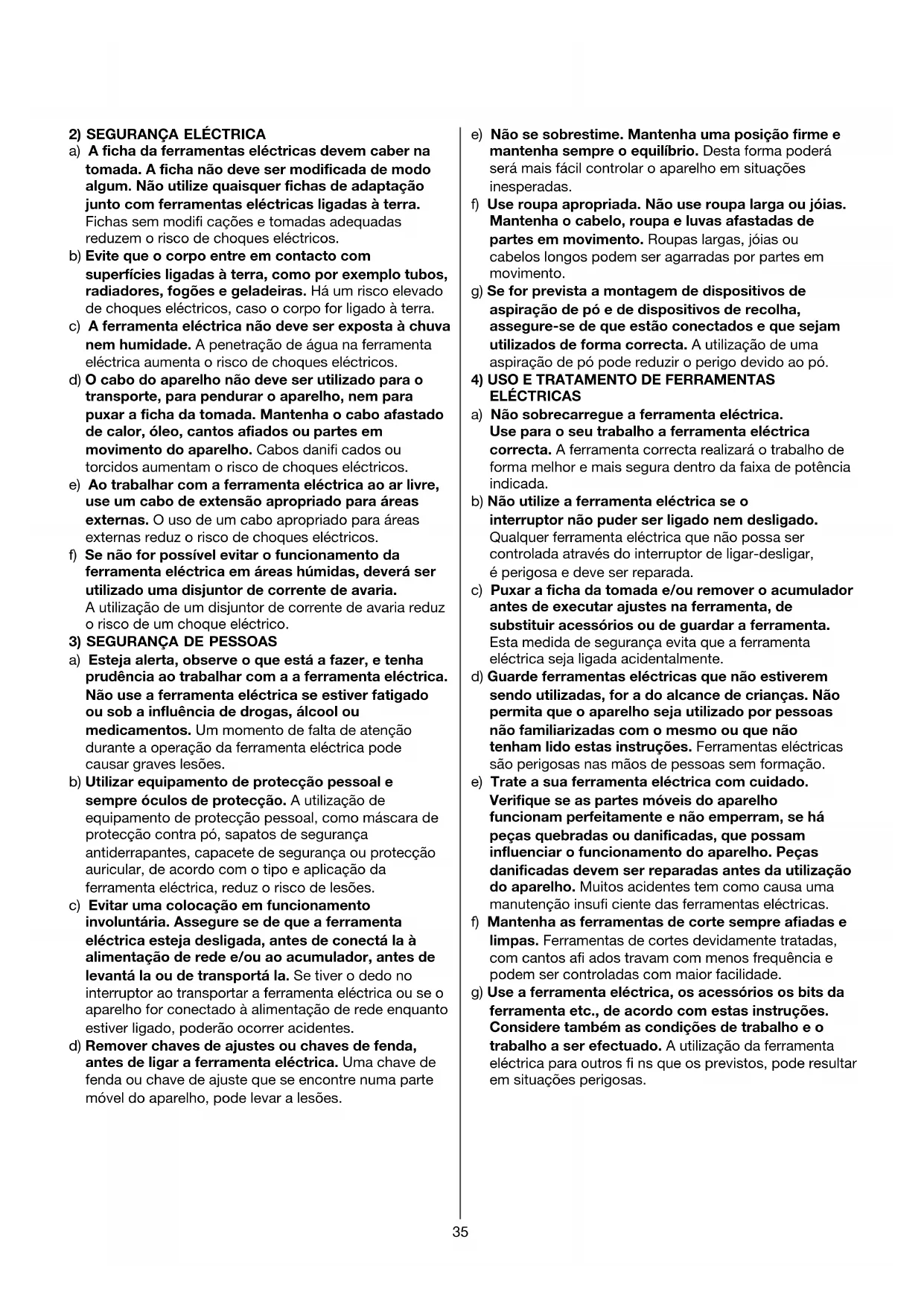 b) Não trabalhar com a ferramenta eléctrica em áreas