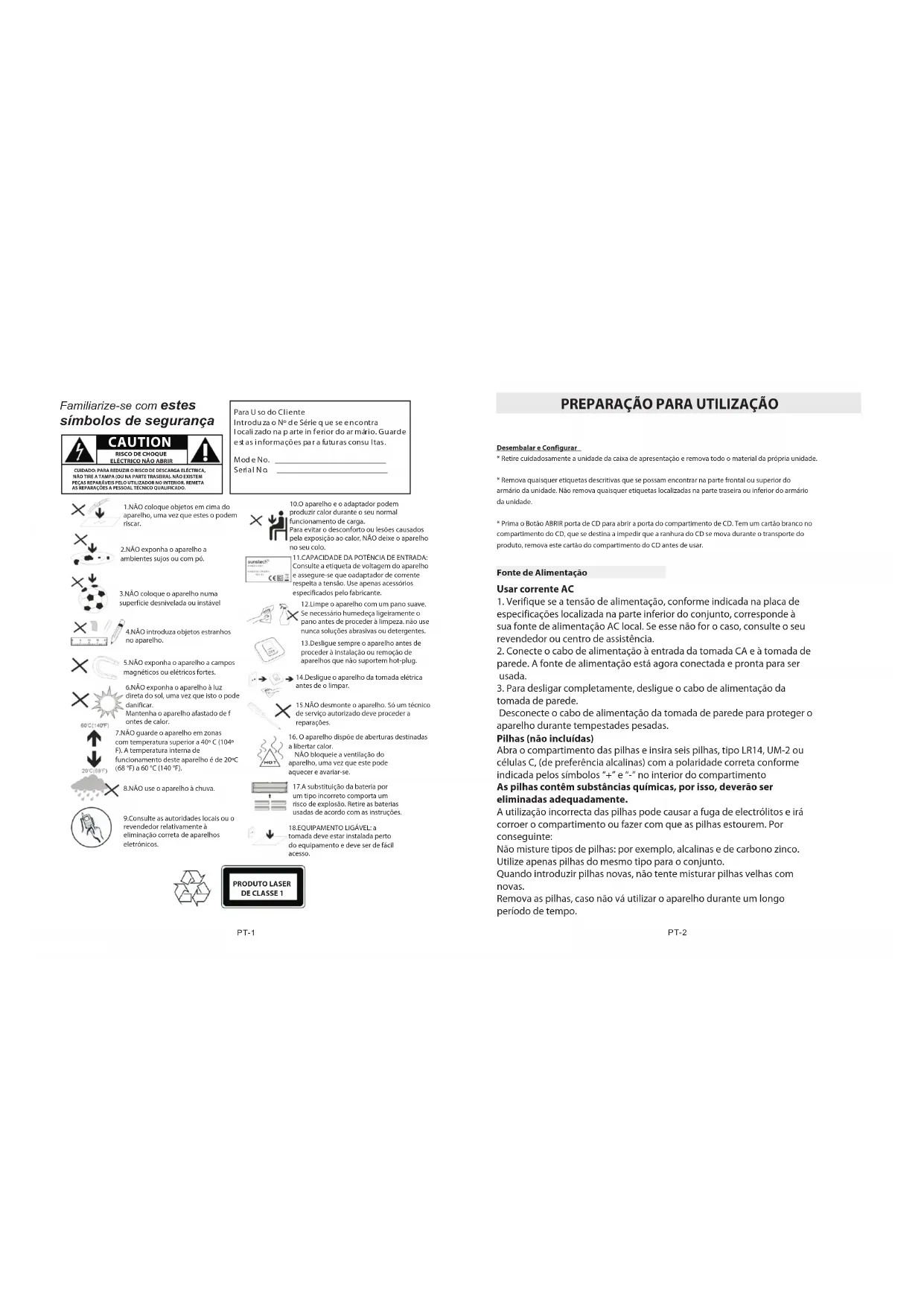 - O apareiro dispoe de aberturas destinadas a libertar calor. NAO bloquee a ventilacion do apareiro, uma vez que este pode aguress e avarir se.