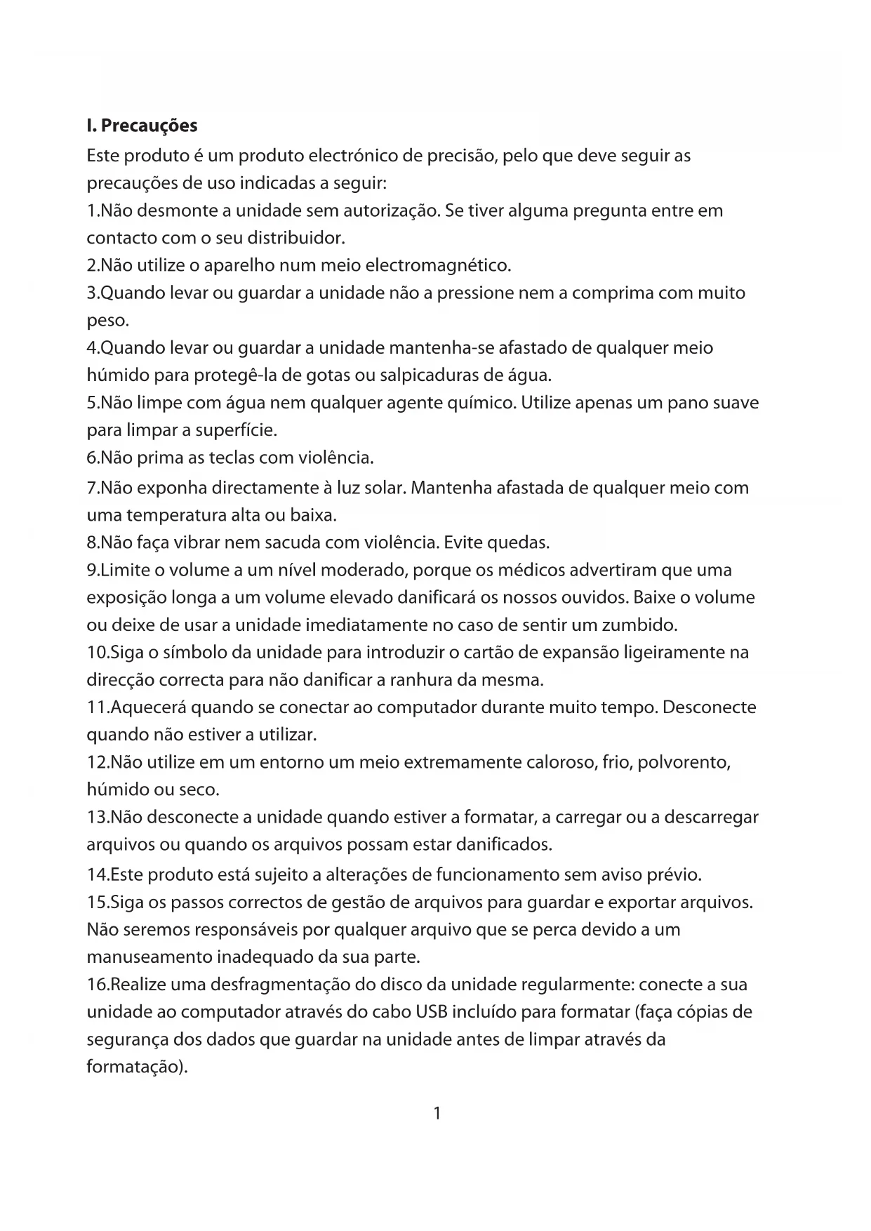 12.ão utilize em um entorno um meio extremamente caloroso, frio, polvorento, humido ou seco. - Não desconecte a unidade quando estiver a Formatting, a carregar ou a descarregar arquivos ou quando os arquivos possam estar danificados.