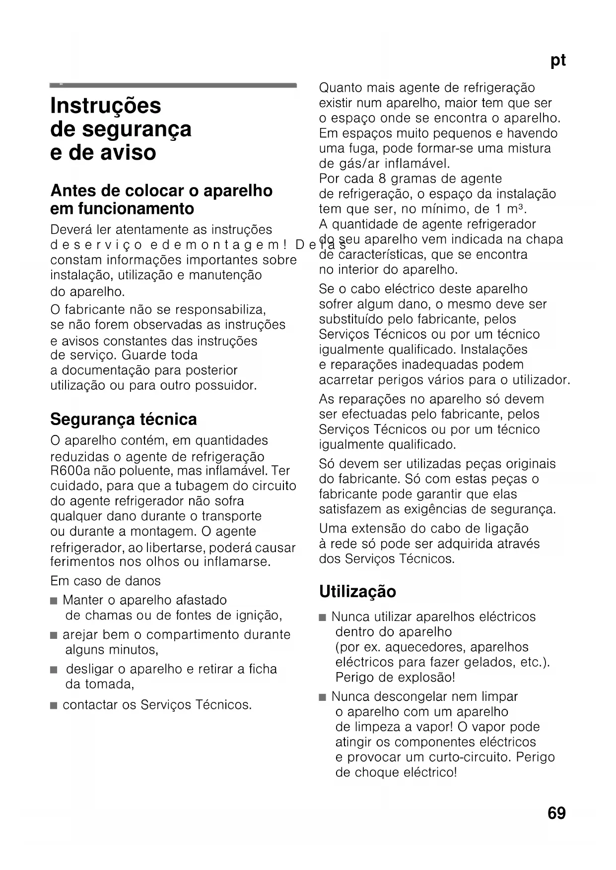Instruções desegurança edeaviso 69
