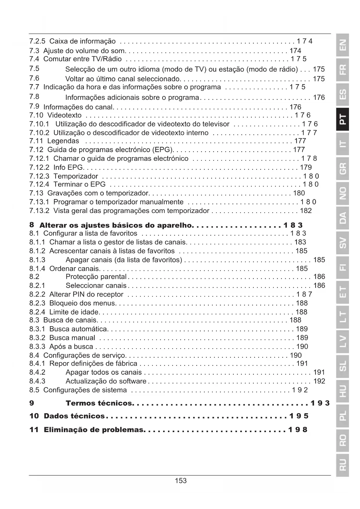 7.10.2 Utilização o descodificador de videotexto interno ......................177