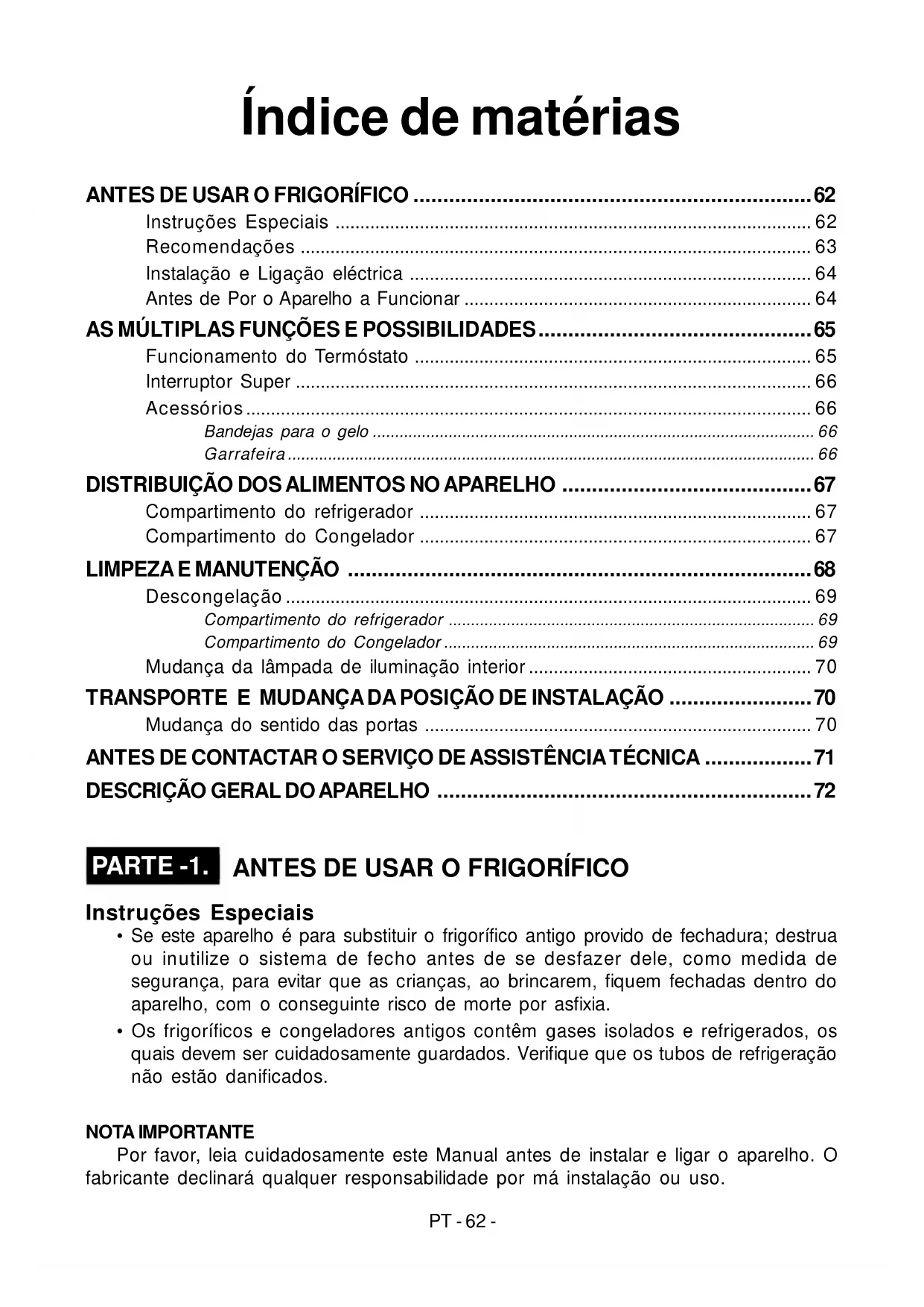 PARTE -1. ANTES DE USAR O FRIGORÍFICO