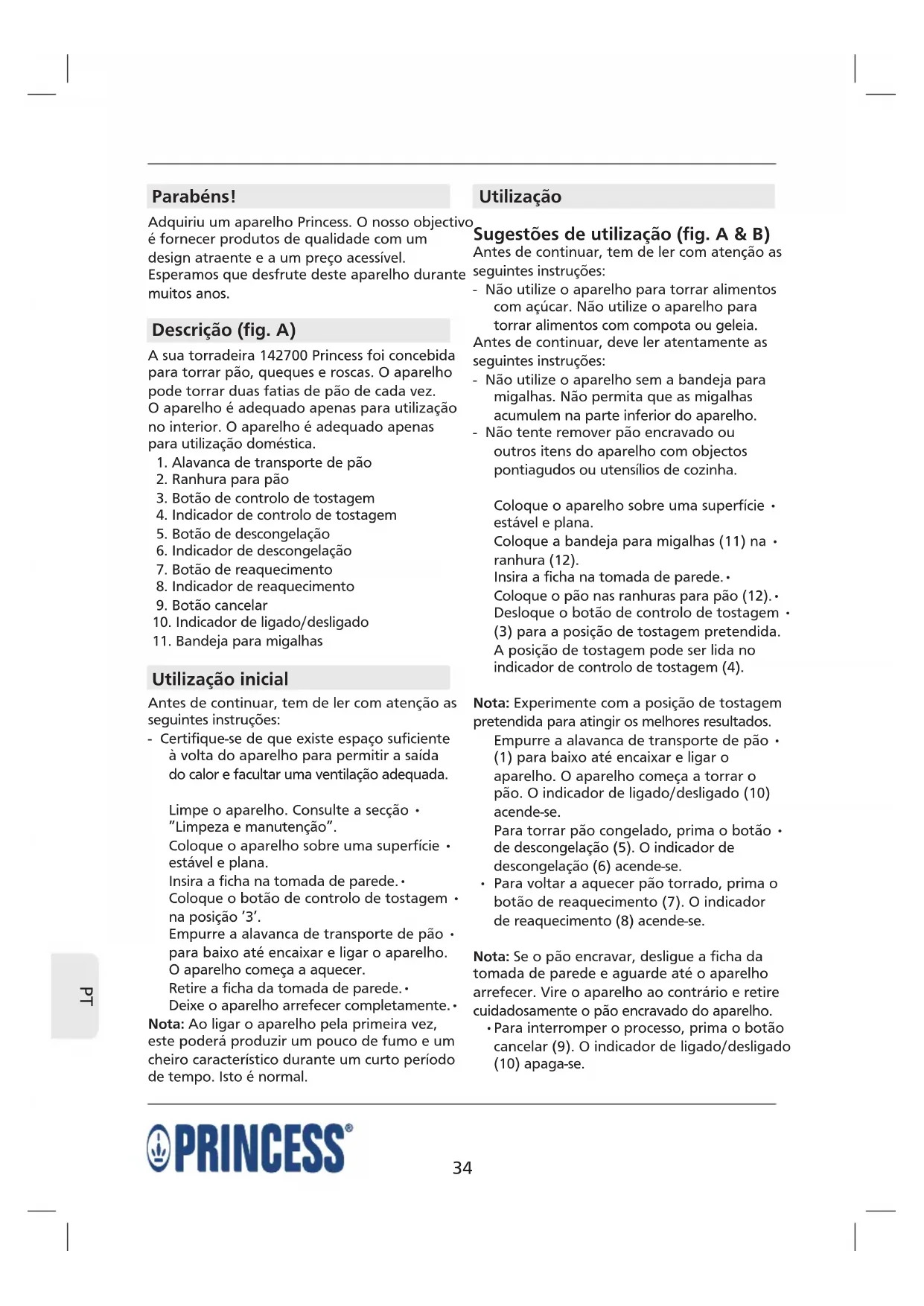 142700 - Torradeira PRINCESS - Manual de utilização gratuito