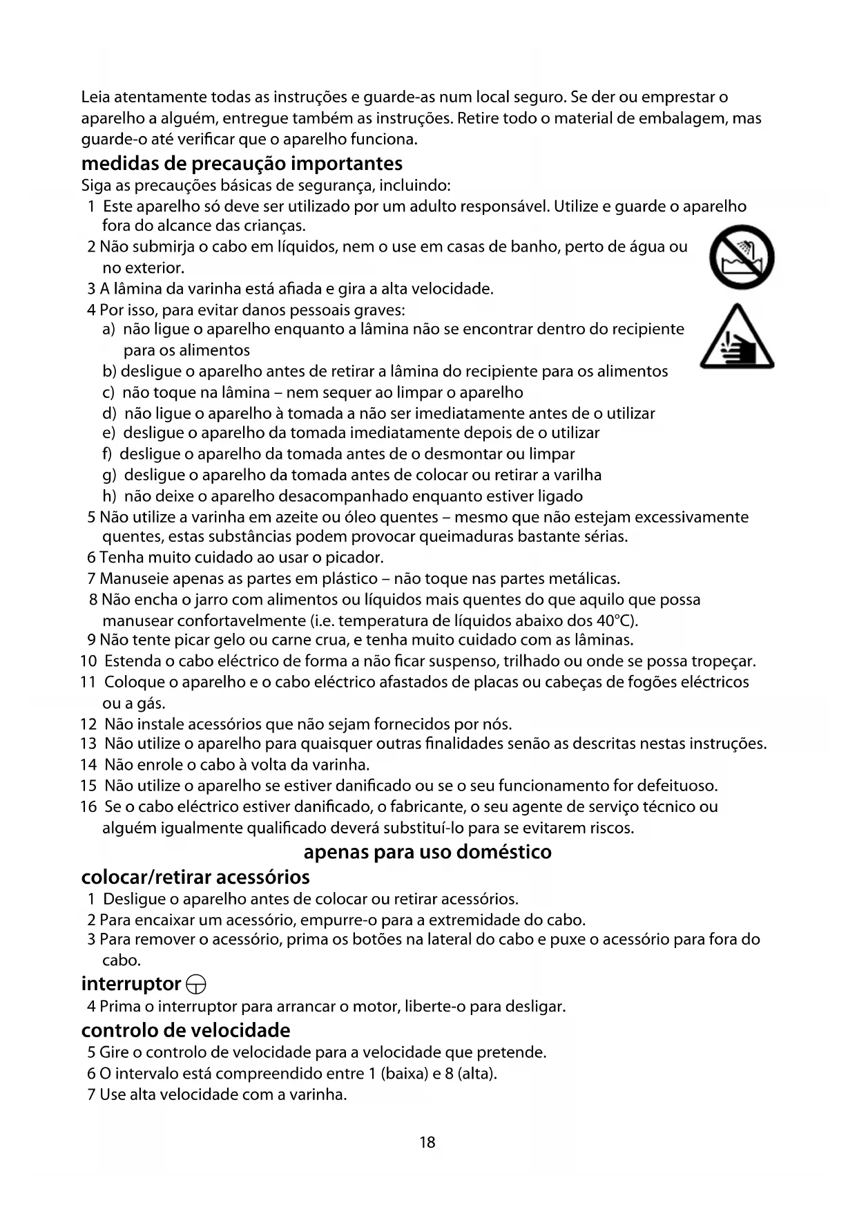 16 Não utilize a varinha em azeite ou óleo quentes – mesmo que não estejam excessivamente