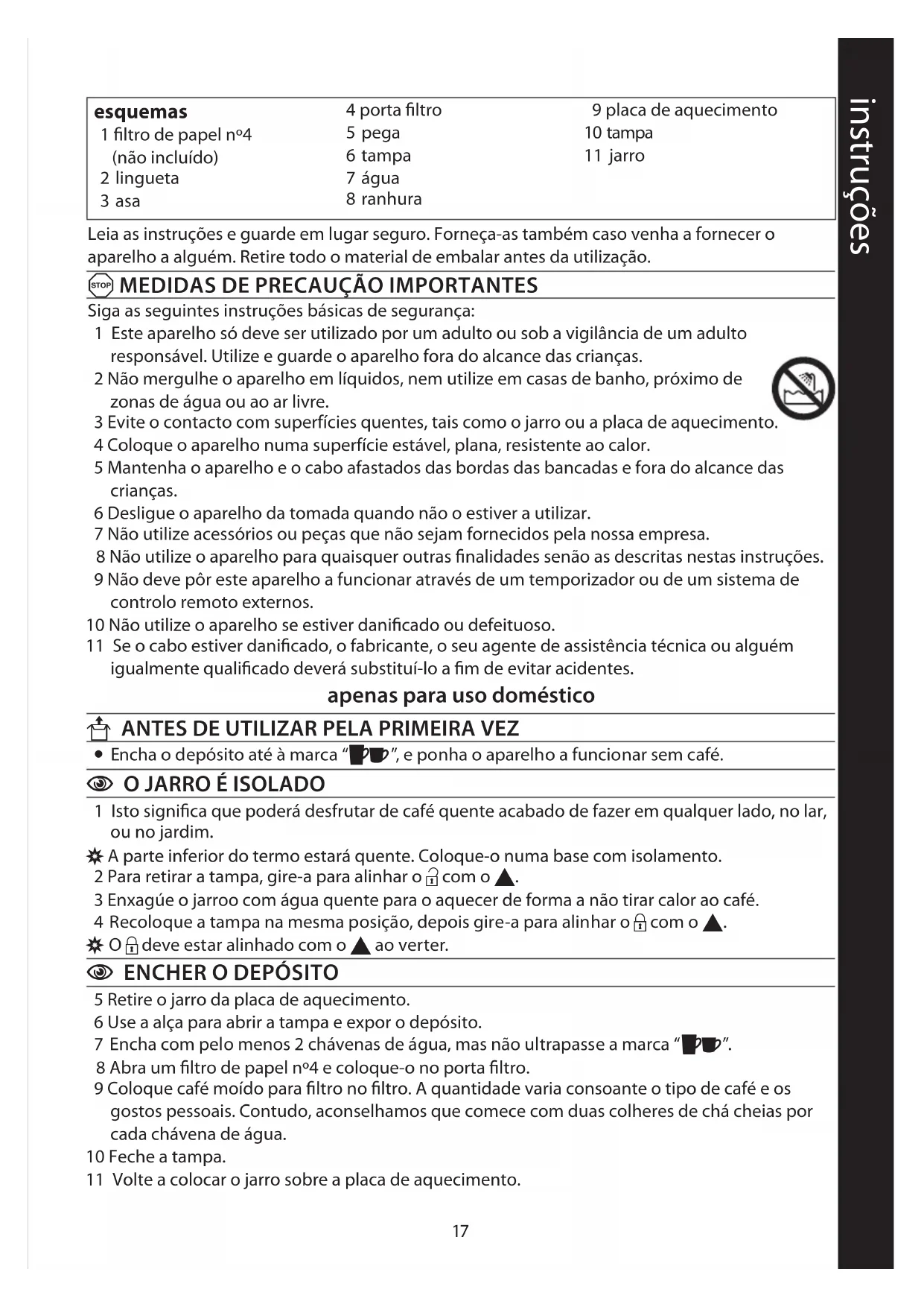 35 Pode lavar o jarro e o porta filtro com água quente e sabão. Depois, enxagúe bem para retirar