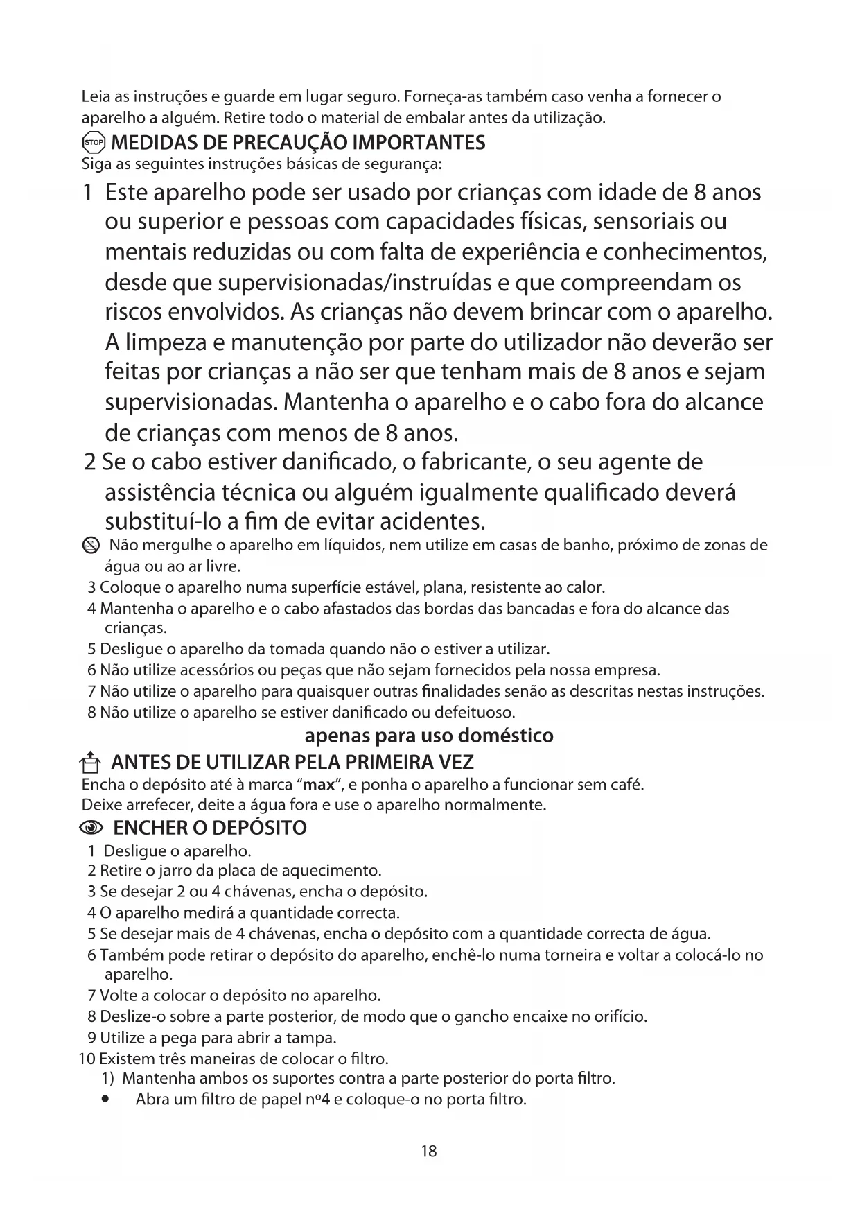 18 Em 0, a placa de aquecimento mantém o café quente por 1 hora.